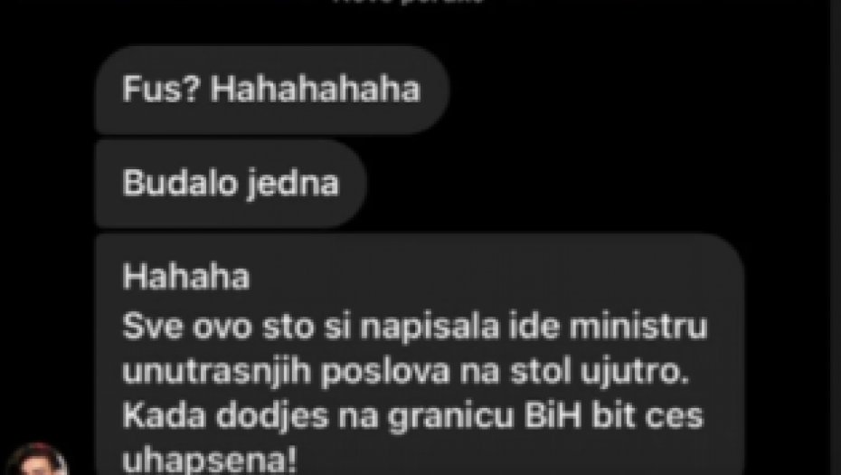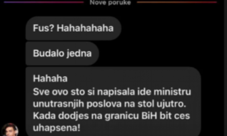 - Budalo jedna! Sve ono što si napisala ide ministru unutrašnjih poslova na sto ujutru. Kada dođeš na granicu Bosne i Hercegovine, bićeš uhapšena - glasila je poruka Alena Albinovića.