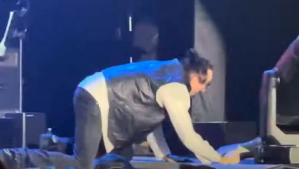 Bebek se u jednom trenutku sapleo na bini i pao. Pokušao je da ustane, ali je ponovo pao, te je potražio pomoć od svoje ekipe.