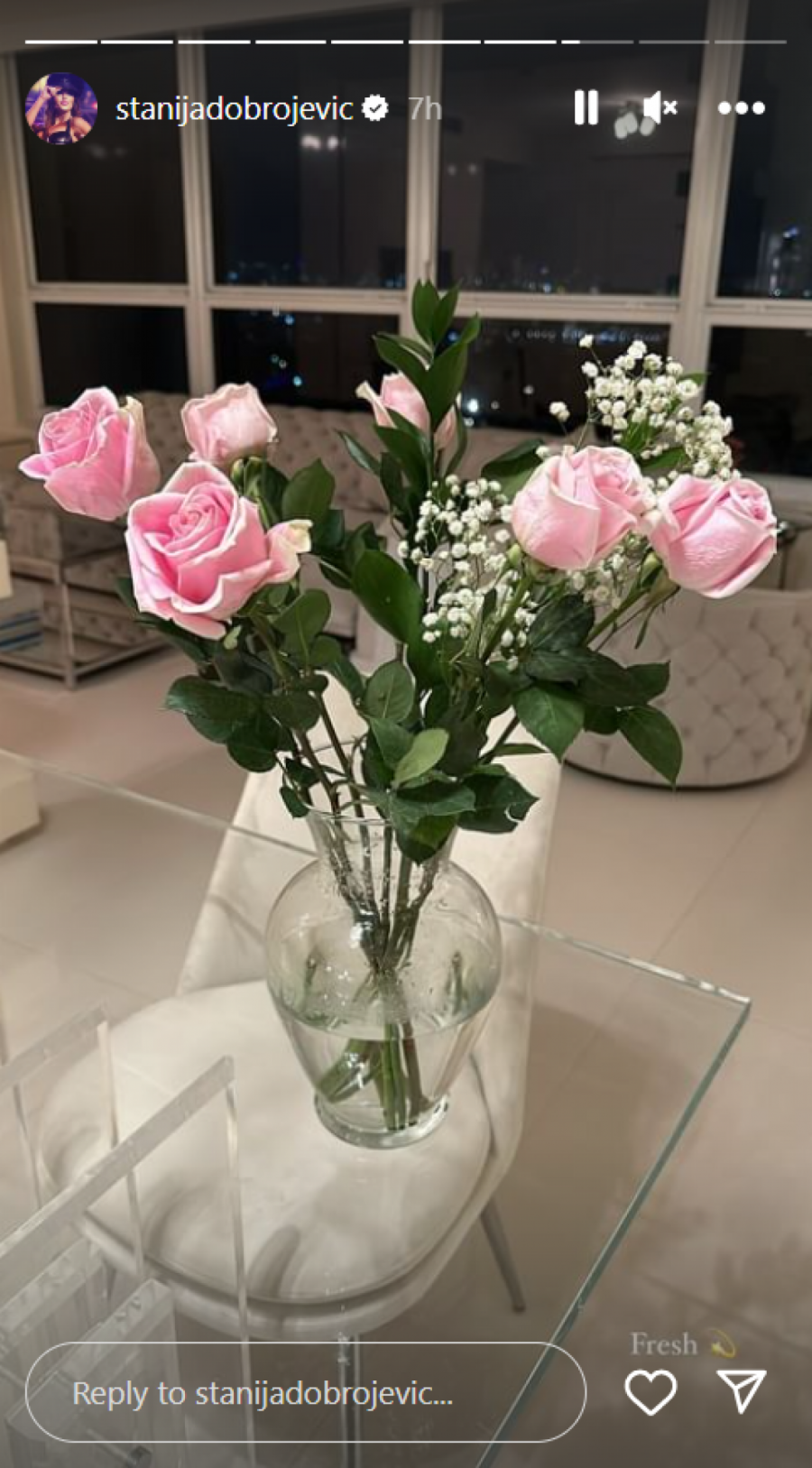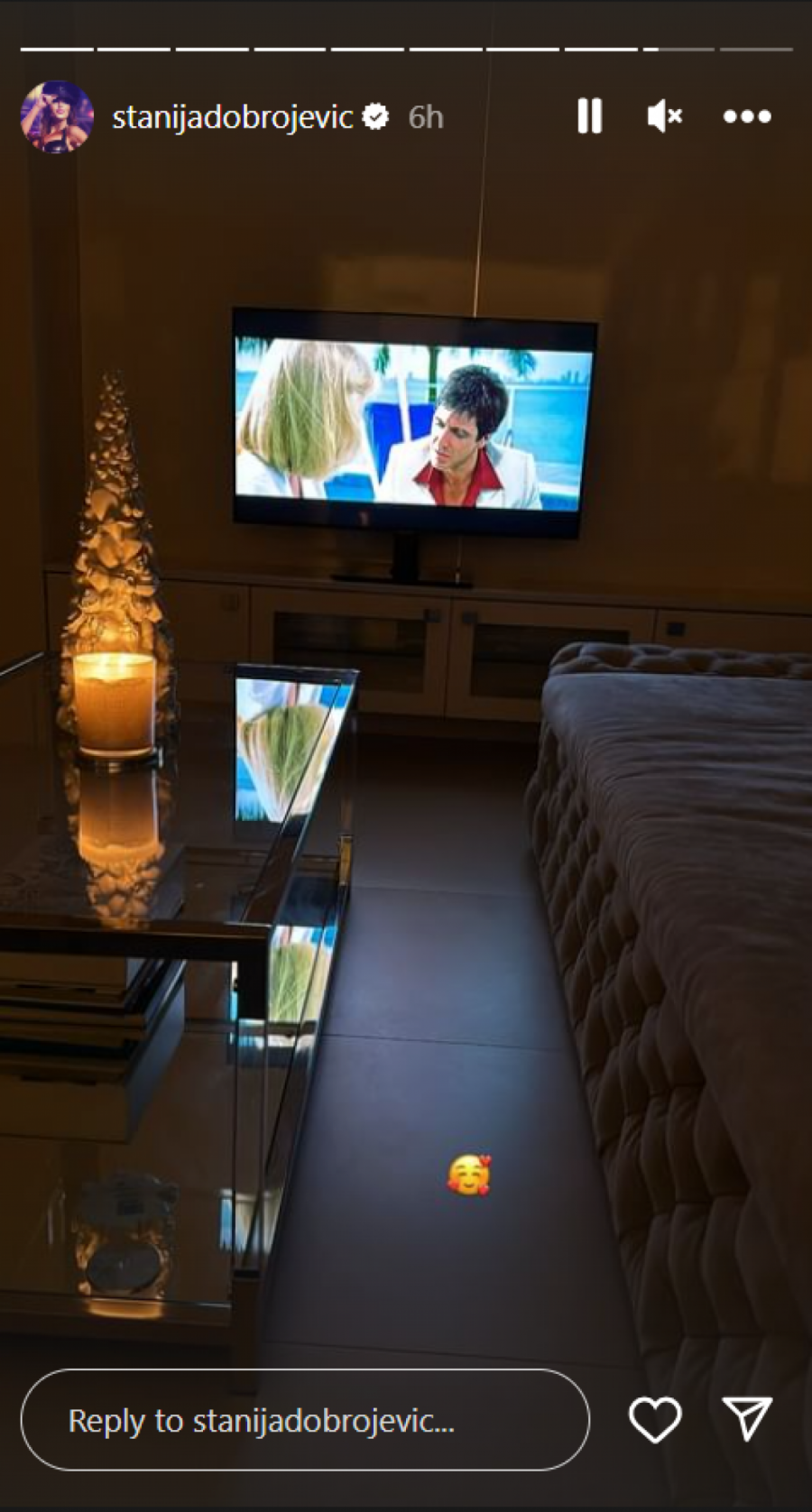 Na jednoj fotografiji vidi se sto postavljen za dvoje, pa je jasno da je Stanija imala društvo tokom večere. Na sledećoj se vidi da sa nekim uživa u filmu, čak je jasno da je u pitanju hit ostvarenje "Lice sa ožiljkom", a tu su i kadrovi sa ružama, kao i jutro na obali okeana.