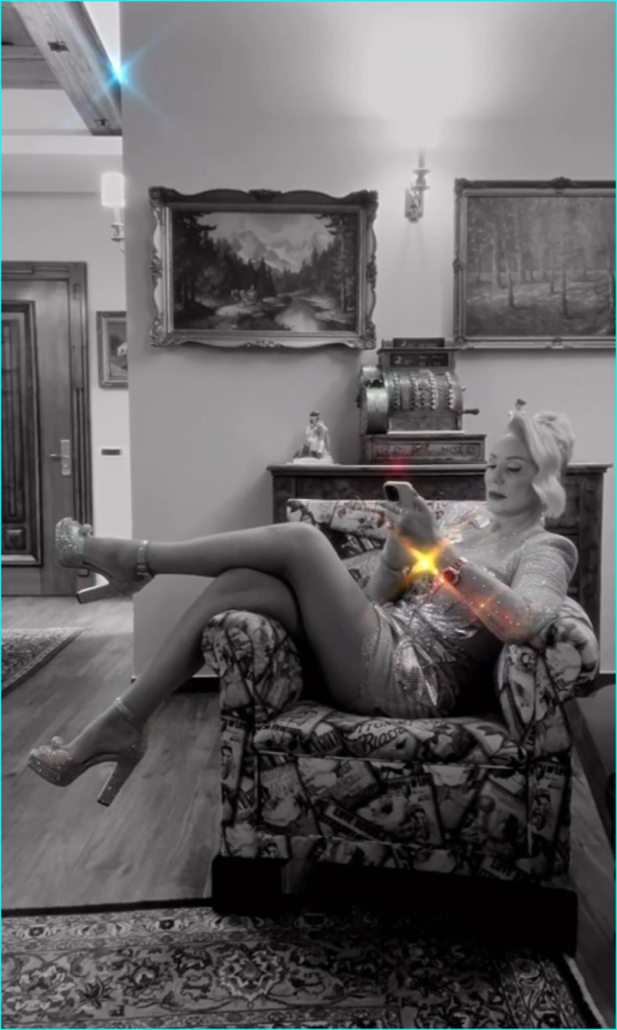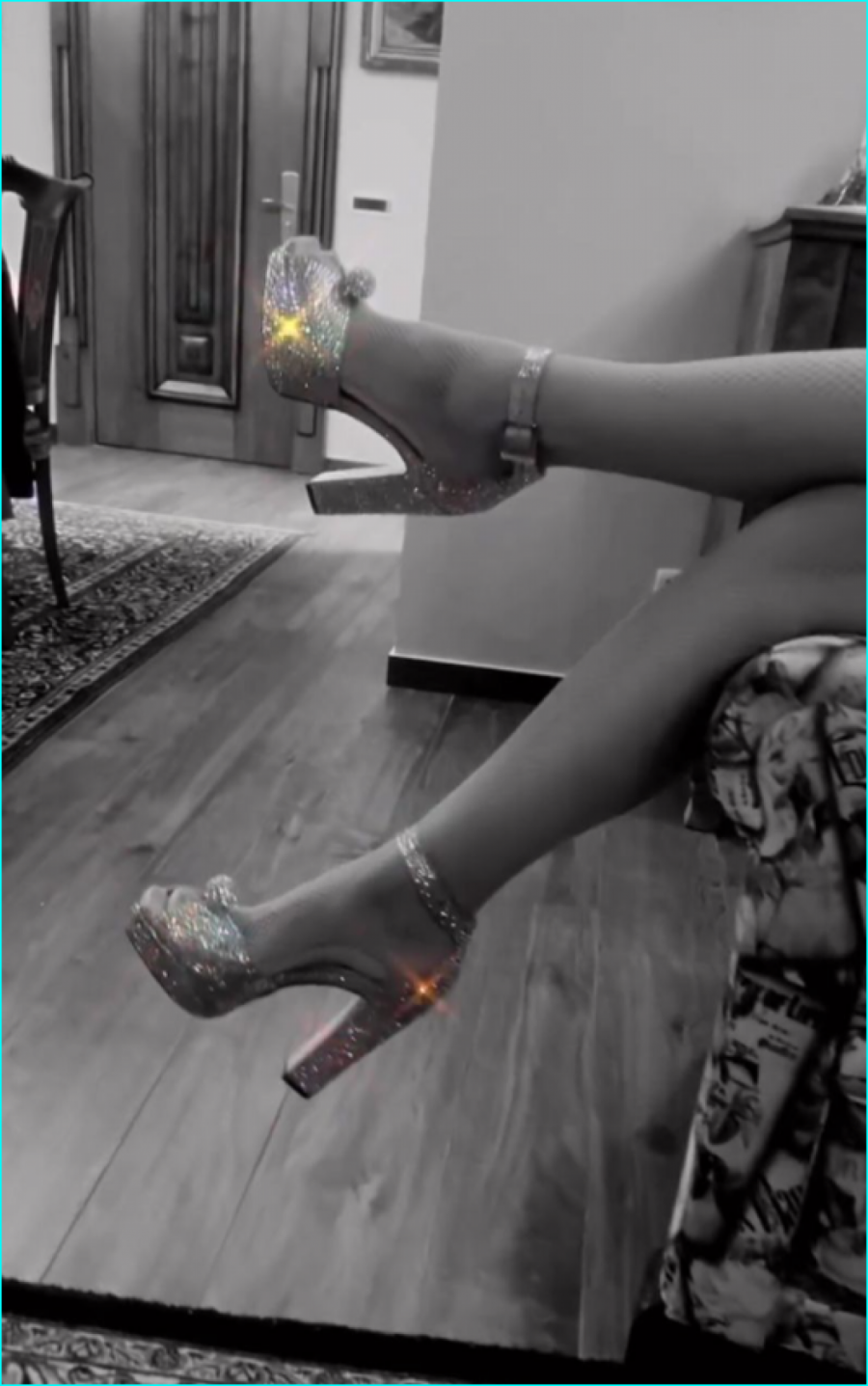 Naime, ona se u mini haljini udobno uvalila u fotelju u porodičnom domu, a visoke potpetice dodatno su pojačale efekat koji je poslala.