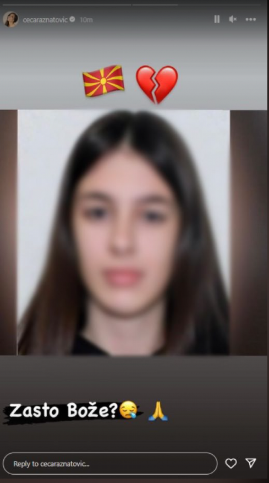 Ceca se ovim povodom oglasila na svom Instagram profilu i izrazila duboko žaljenje zbog stradale četranestogodišnje Vanje Gorčevske.