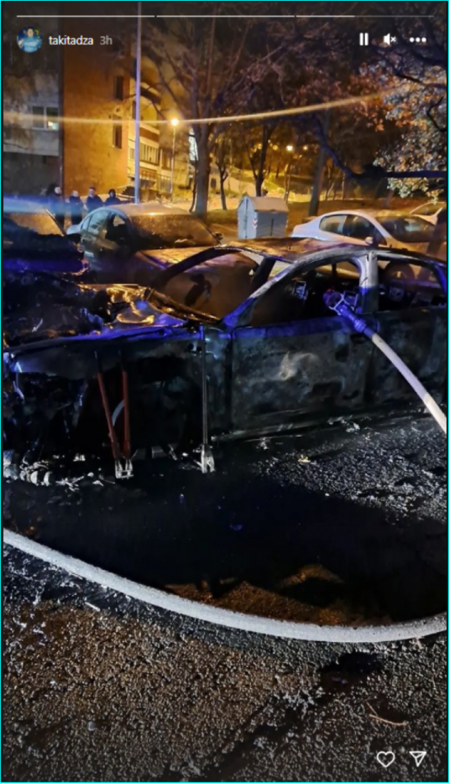 Otac starlete Maje Marinković, koja je trenutno u "Eliti", objavio je, najpre, video snimak svog spaljenog automobila, a zatim i pokazao da je još nekoliko vozila koji su se našli na parkingu pored njegovog auta, takođe oštećeno.