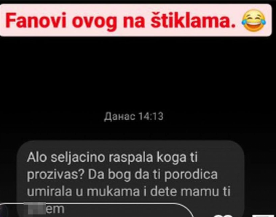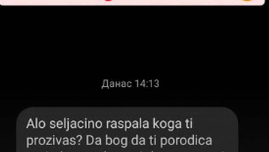 - Alo seljačino raspala, koga ti prozivaš? Dabogda ti porodica umirala u mukama i dete, mamu ti je**m - pisalo je u poruci.