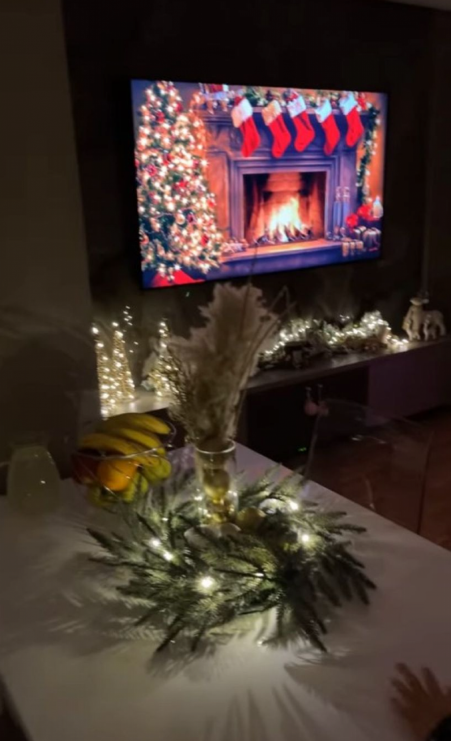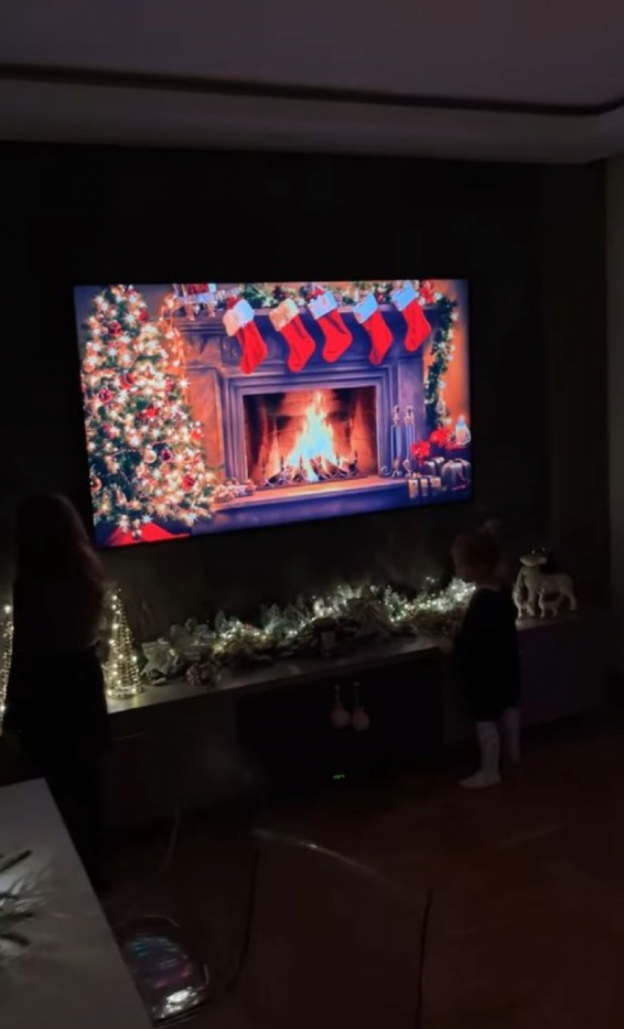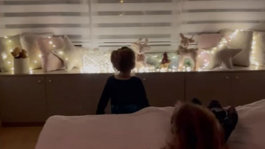 U stanu su se našle velika jelka, Deda Mraz, irvasi, paketići i lampioni, ali i pevačicice ćerke koje su uživale u prazničnoj euforiji.