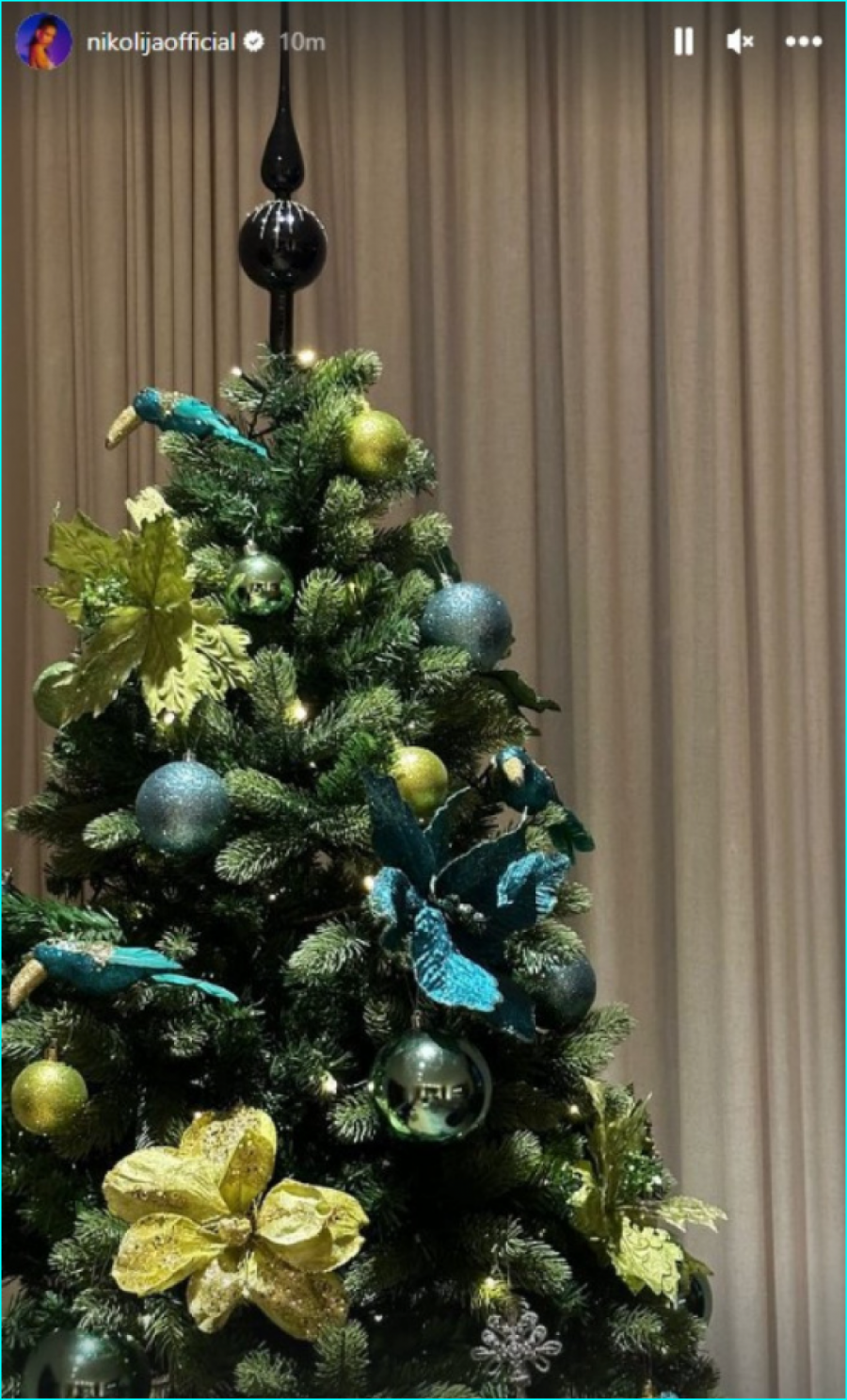 Viki je već među prvima ukrasila enterijer u svom domu u Beogradu na vodi, a onda i sama ispozirala pored jelke sa čašom vina.