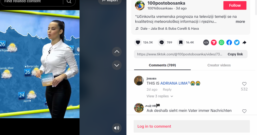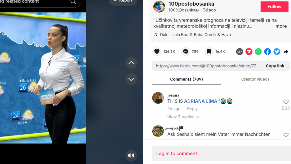 Bosanska Adrijana Lima", "Ista je Adrijana Lima", "Zbog nje bih prognozu gledao svaki dan", "Koliko je samo zgodna i lepa", "Prekrasna voditeljka"... samo su neki od komentara na račun lepe devojke.