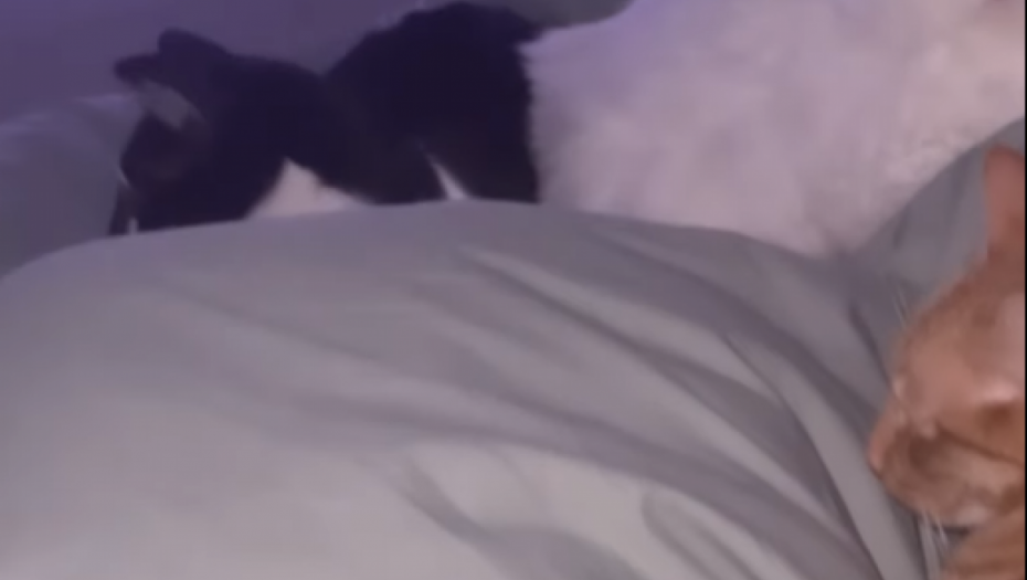Ipak, ono što je privuklo više pažnje od činjenice da krevet dele sa mačkama jeste program na televiziji koji su pratili.