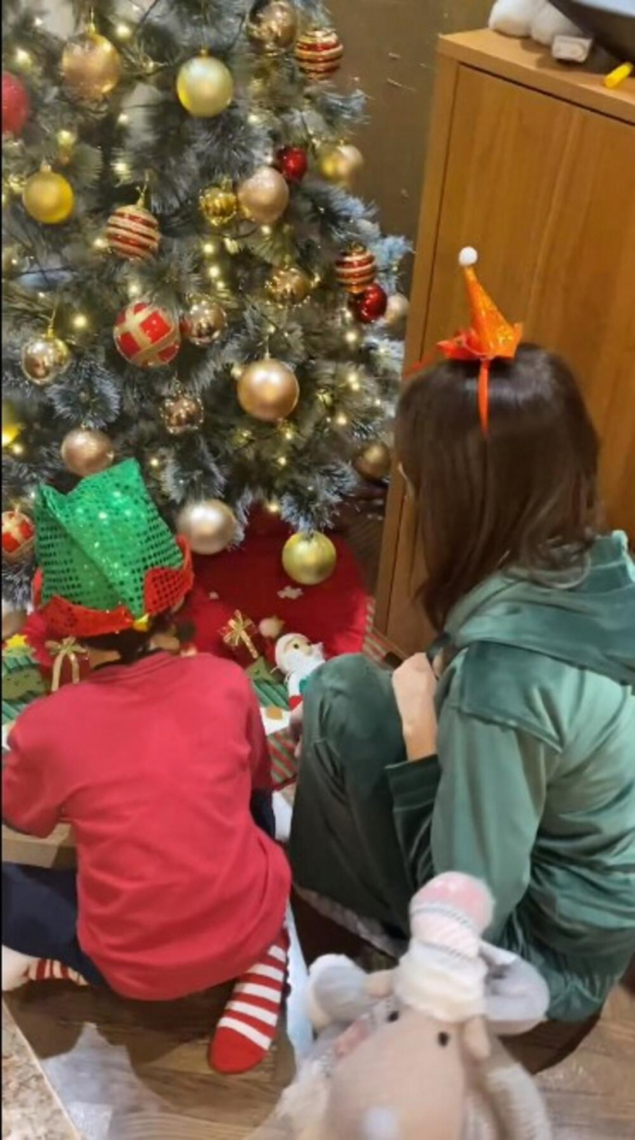 Nataša i njen naslednik obukli su se u skladu sa situacijom, voditeljka je imala plišanu zelenu trenerku i crveni rajf, dok je njen sinčić obukao čarape sa crveno belim prugama, crvenu bluzu i zelenu šljokičavu kapu.