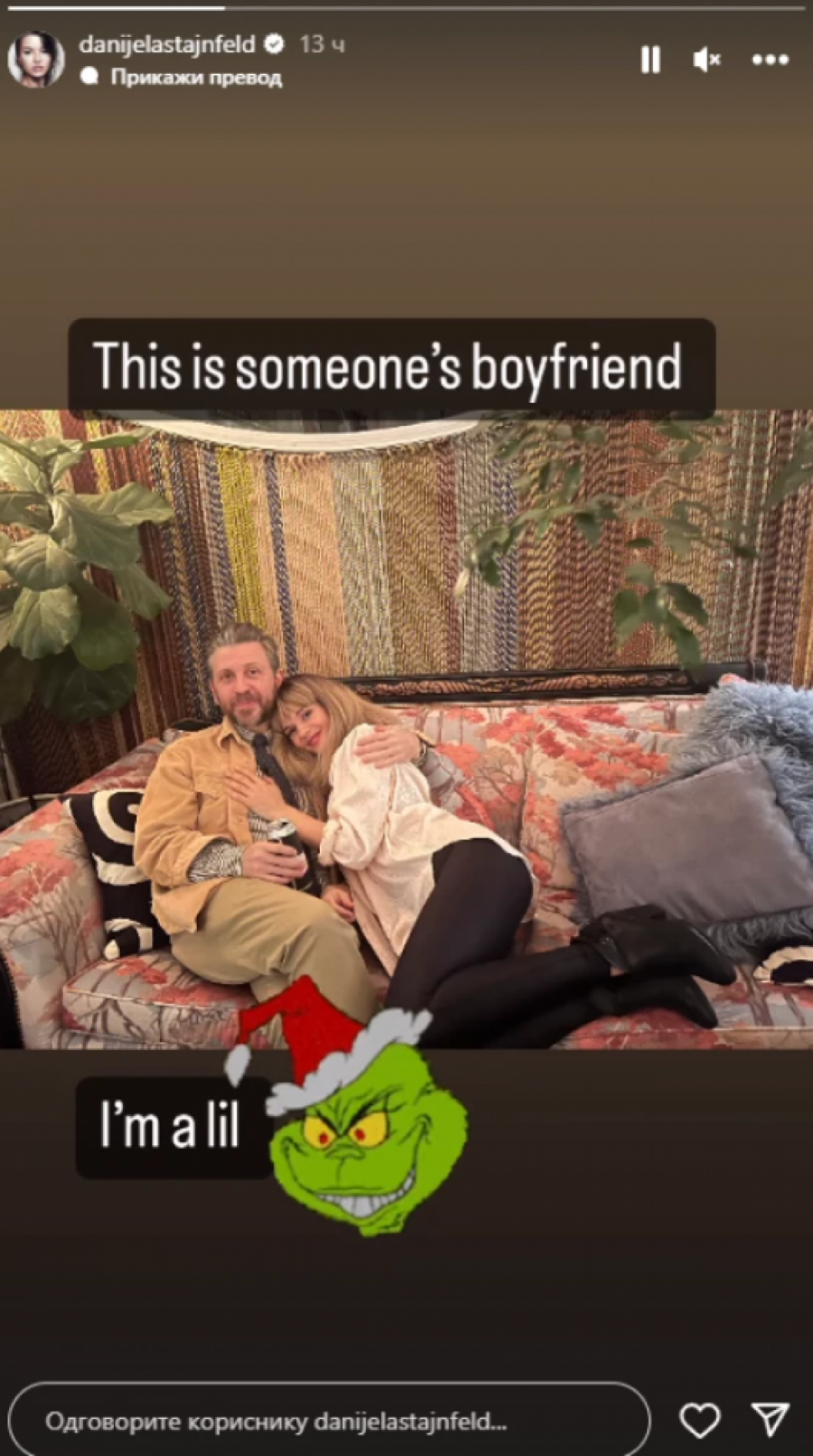 - Ovo je nečiji momak. Ja sam mali Grinč - dopisala je Danijela aludirajući na popularnog lika iz knjige "Kako je Grinč ukrao Božić!".