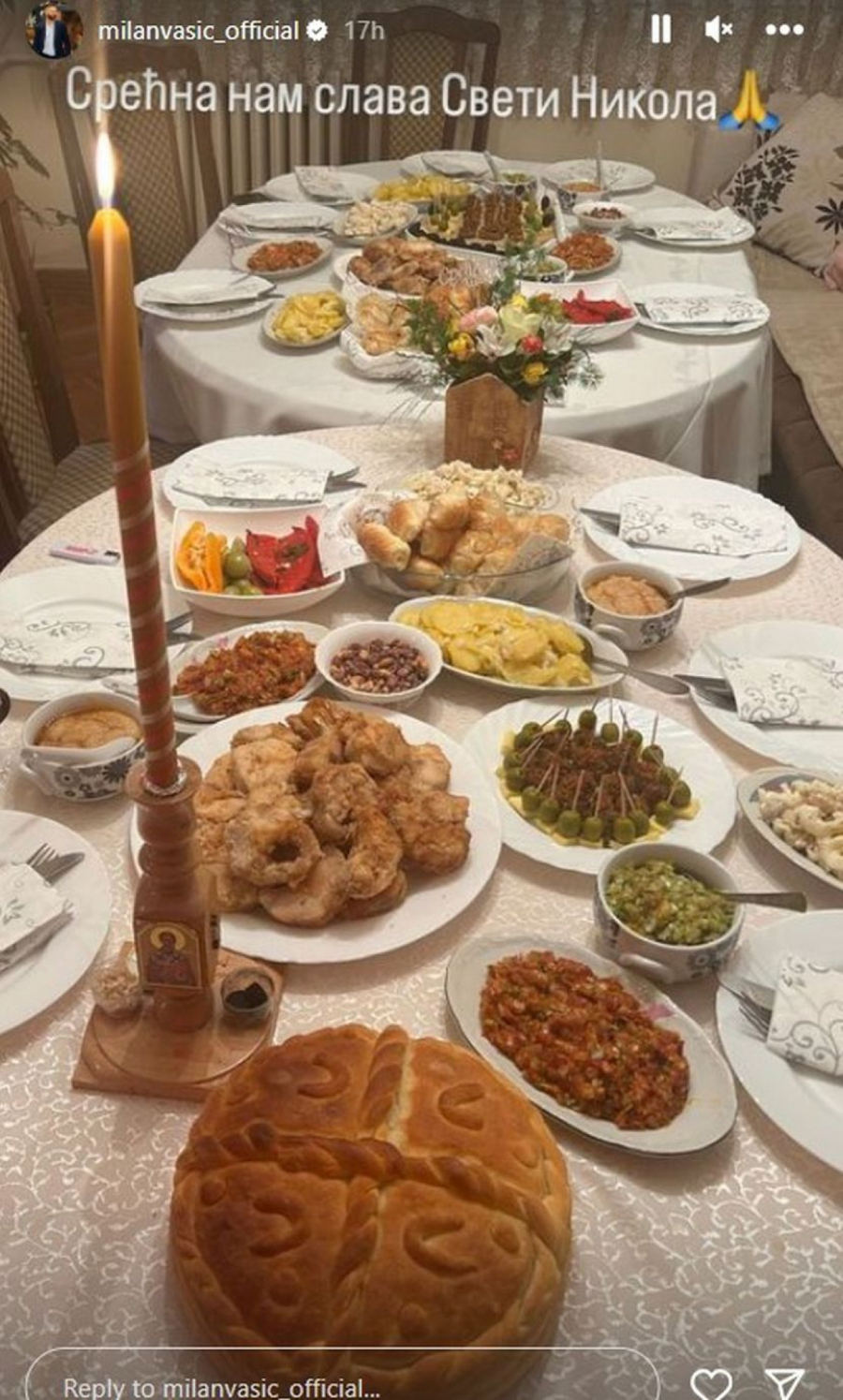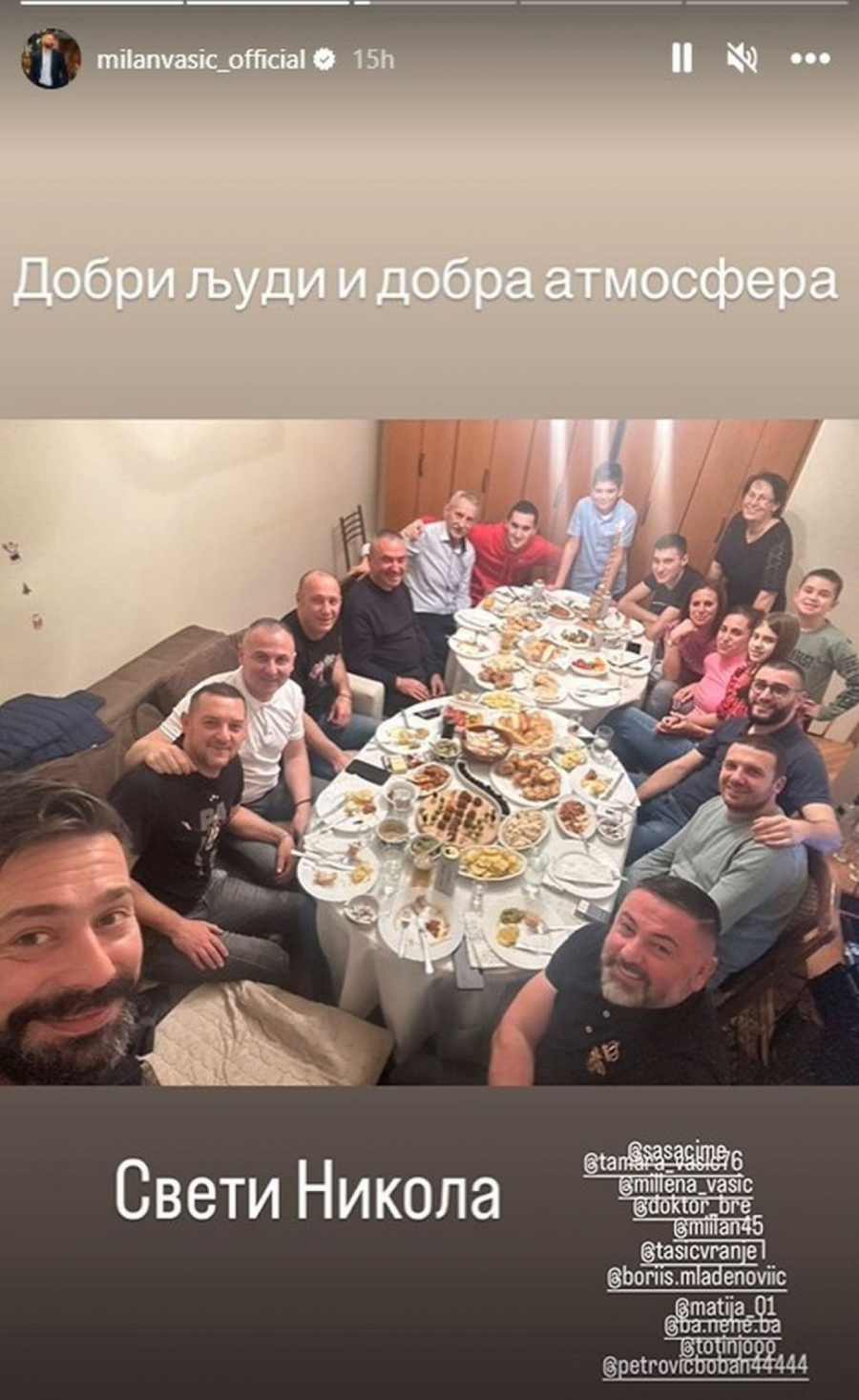 On je još sinoć objavio fotografiju iz svog doma i pokazao kako sa prijateljima već u ponoć, slavi krsnu slavu.