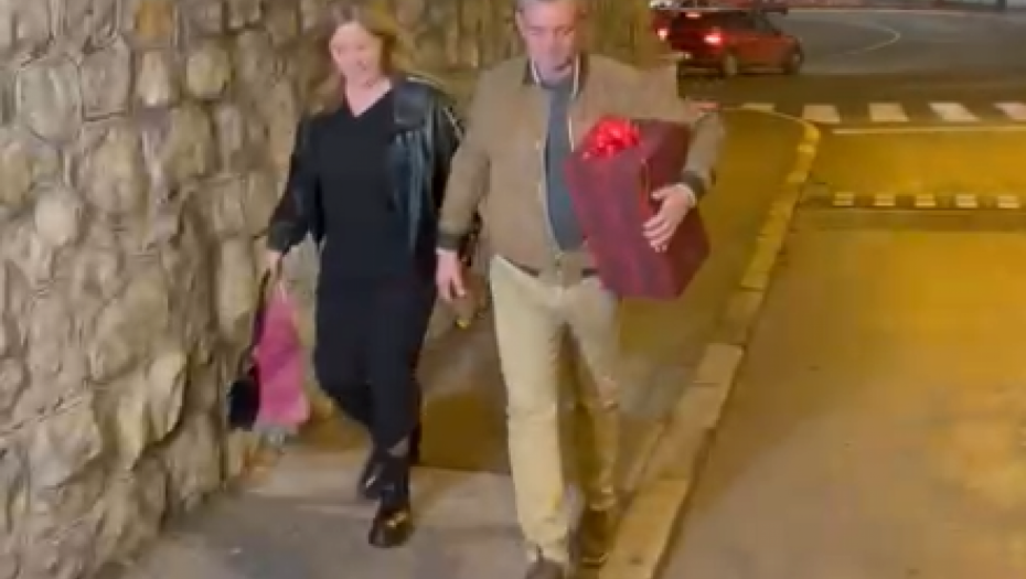 Prijatelj Bogdan u rukama je nosio ogroman paket, a cveće je izostalo. Verovatno Rodići vole da budu praktični, pa su za priju izabrali nešto da je seća na njih dugi niz godina.