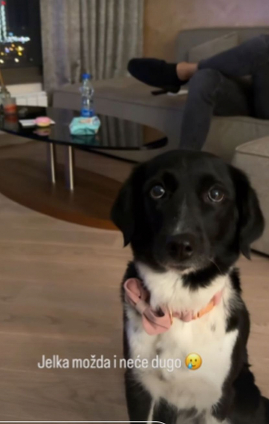 Mina je fotkala psa, koji je već "snimio" jelku, te se odmah znalo šta se sprema, pa je trudna lepotica konstatovala sledeće: