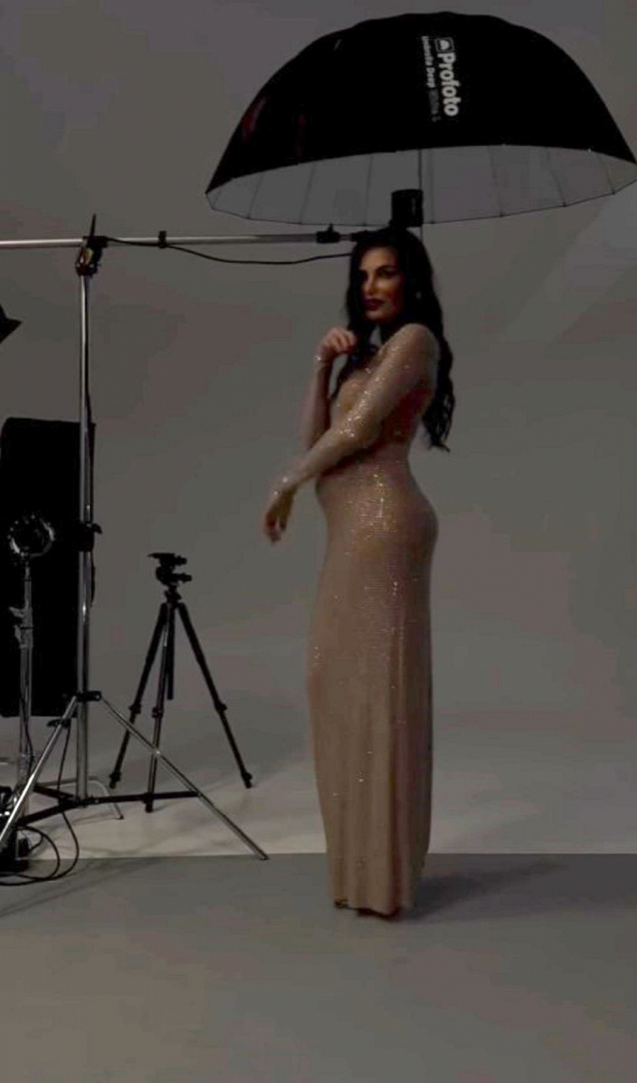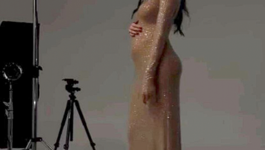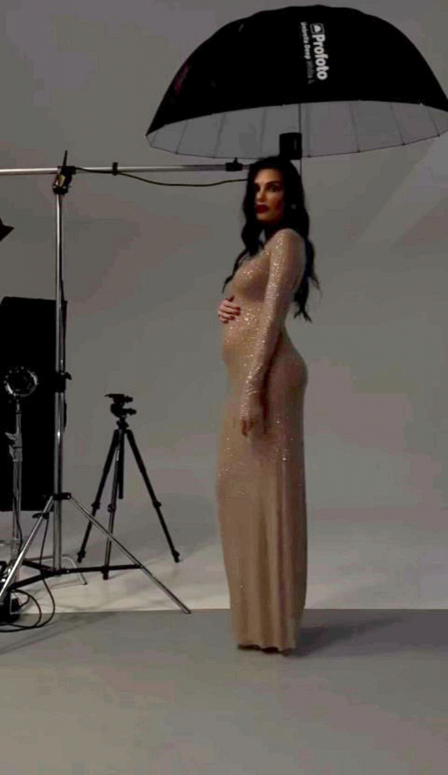 Naime, ona je pozirala na jednom setu u elegantnoj haljini, a stomačić je bio u prvom planu.