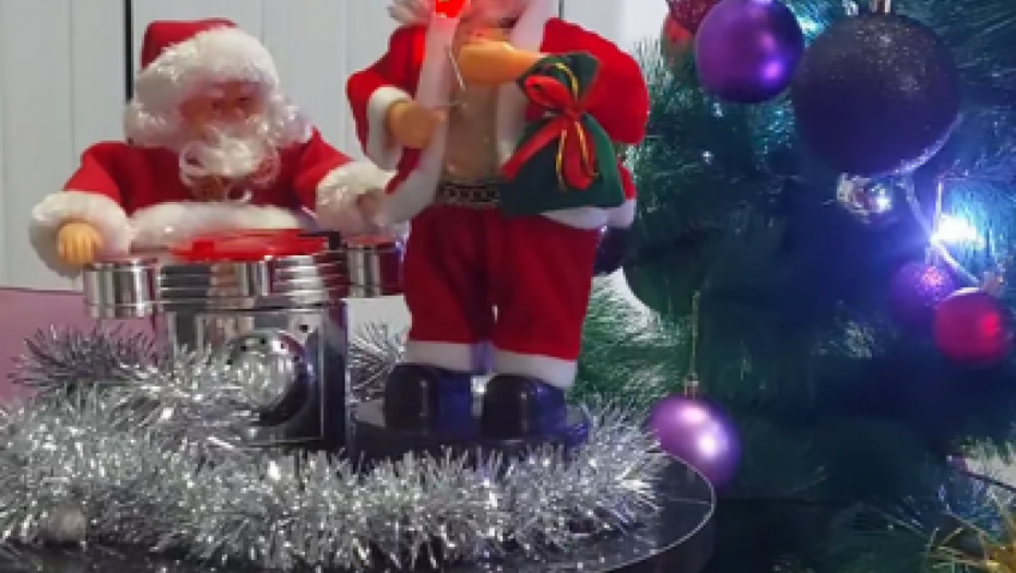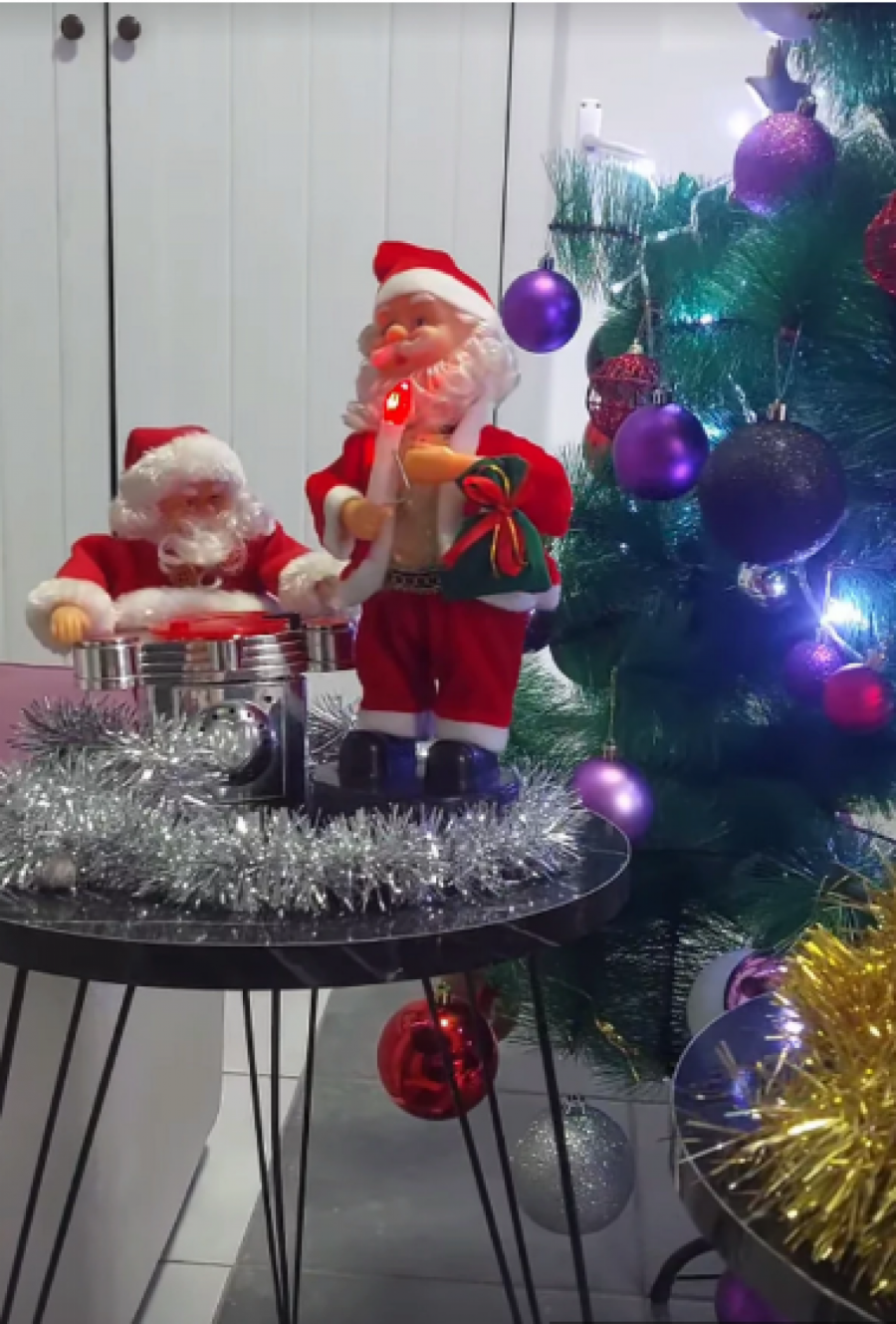 Pored nje je stavila još nekoliko novogodišnjih ukrasa Deda Mraza koji su dodatno činili da dekoracija izgleda još lepše i bogatije, a svetleće lampice su bile po kući.