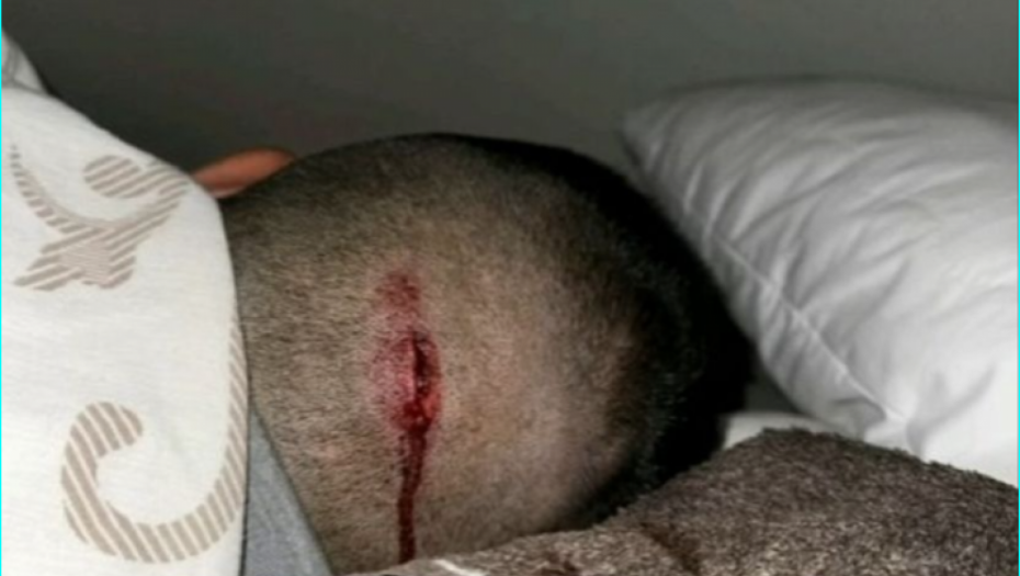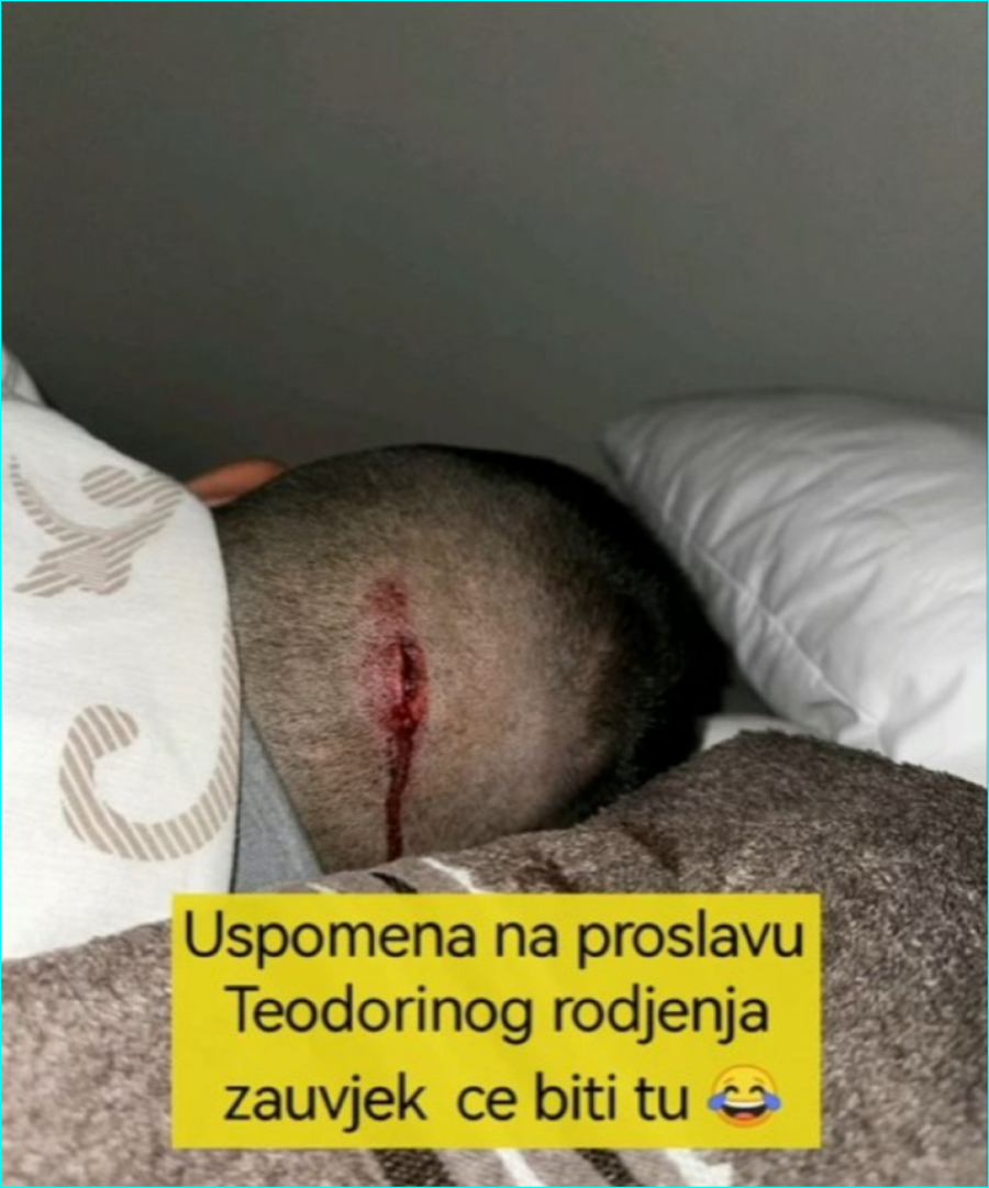 Potom je pokazao i "uspomenu" na ovu veče, ogromnu ranu na glavi.