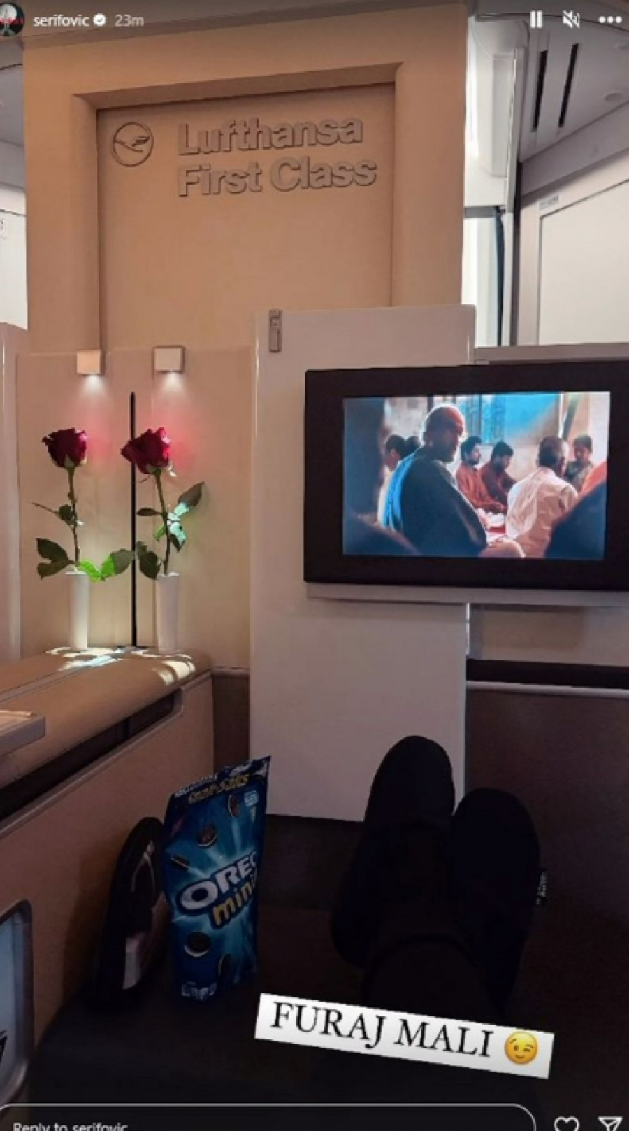 To je pokazala i na Instagramu, kada je objavila fotografiju iz aviona, a na vratima je pisalo da je deo u kome oni borave tokom leta, prva klasa.
