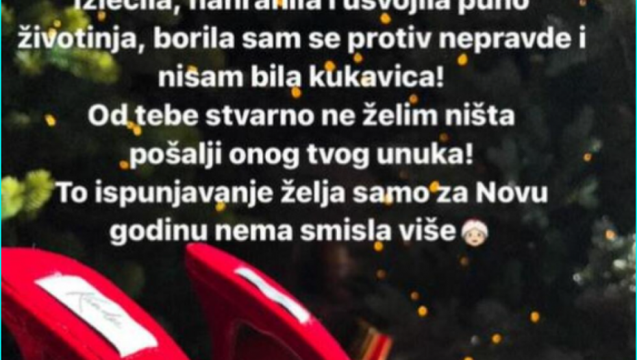 Od tebe stvarno ne želim ništa, pošalji onog tvog unuka! To ispunjavanje želja za Novu godinu nema smisla više - napisala je Jelena.