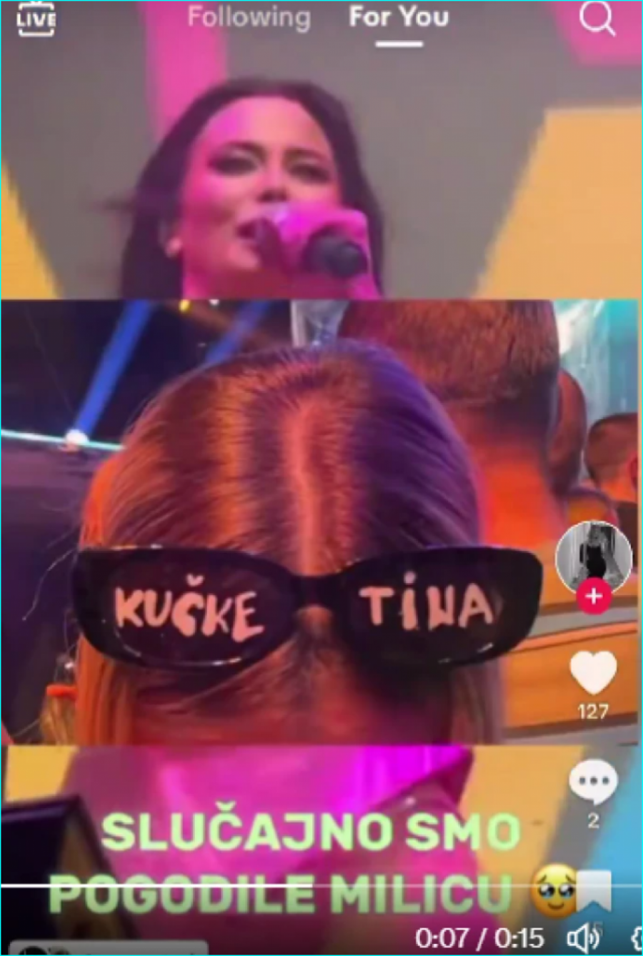 Devojke iz publike su na naočarima napisale "k*čketina", što je naziv Miličine pesme sa poslednjeg albuma, i pevačici ovo bacile.