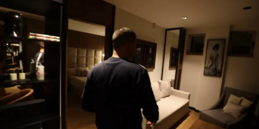 U sklopu stana su i teretana, sauna, soba za masažu, a tapete su od, kako je naglasio, kašmira. U jednoj sobi je i kamin. Podno grejanje je naravno uključeno kao i skupocen nameštaj.