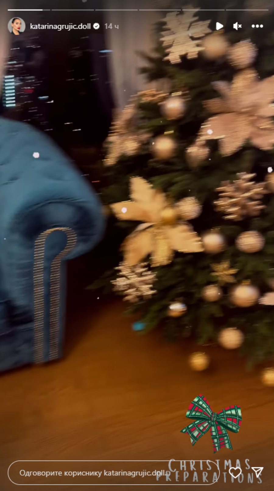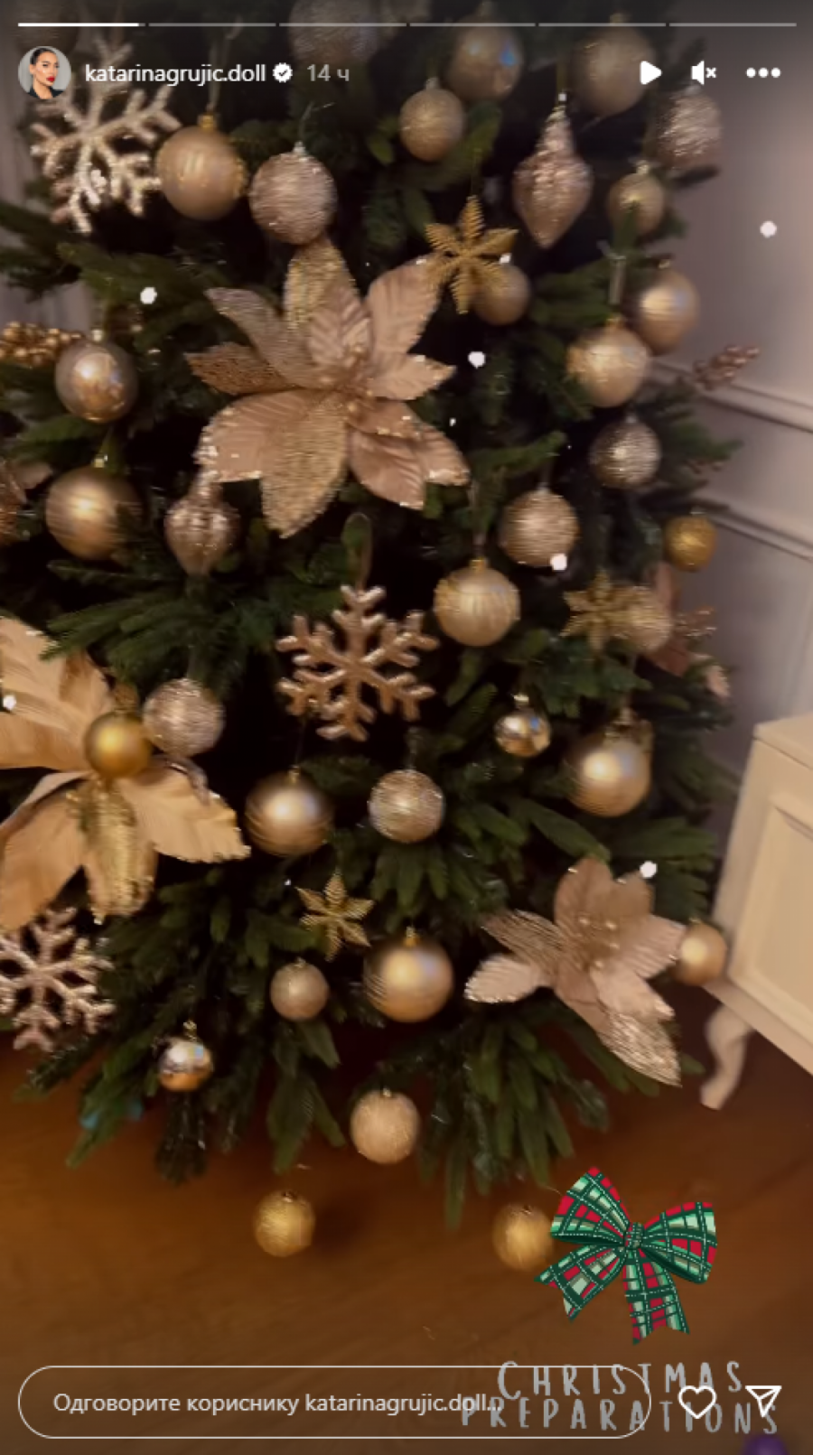 Kaća je sada objavila fotografiju sa naslednicom iz porodičnog doma i pokazala kako su ukrasili jelku, koja je bila do plafona sa zlatnim ukrasima.
