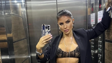 Ona je pozirala prvo u liftu, a potom i u noćnom provodu, a društvo joj je pravio njen partner koji je desetak godina mlađi od nje i sa kojim je Sindi već godinama u ljubavnoj vezi.