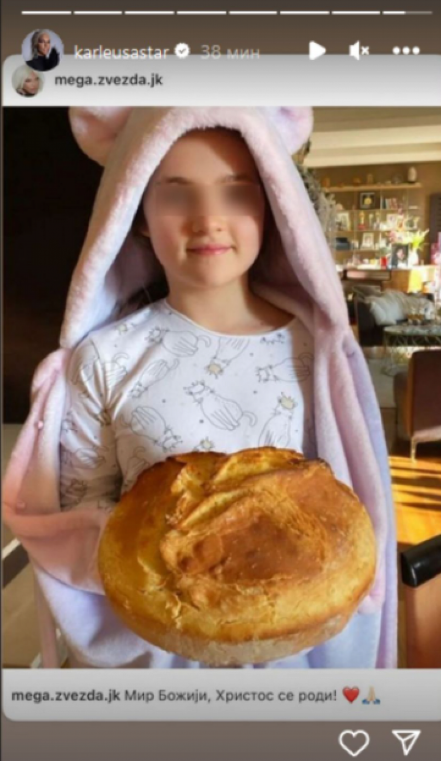 Jedna fan stranica je objavila sliku Nike iz porodične kuće na Dedinju koja je u rukama držala pogaču, a Karleuša je podelila putem Instagram priče.