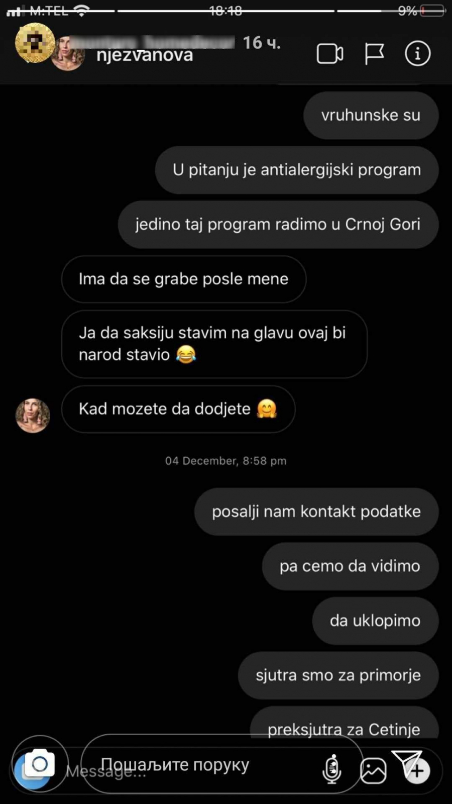 Influenserka poreklom iz Crne Gore, Nataša Kovačević, poznatija kao Njezvanova, na meti je korisnika društvene mreže Tviter, nakon što su poruke u kojima ona kontaktira jednu radnju za opremanje stanova, ugledale svetlost dana.