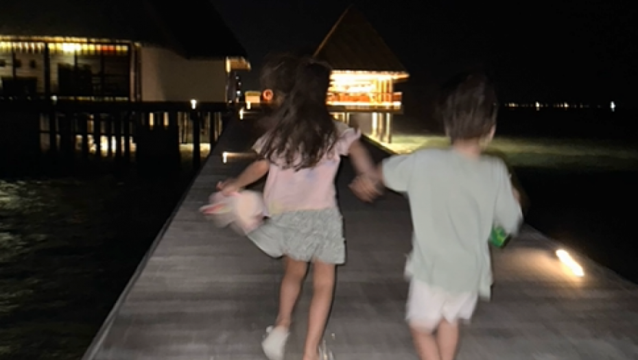 Naime, u narednoj objavi Jelisaveta je pokazala svog sina i ćerkicu s leđa, pa je jasno da je s njima na odmoru.