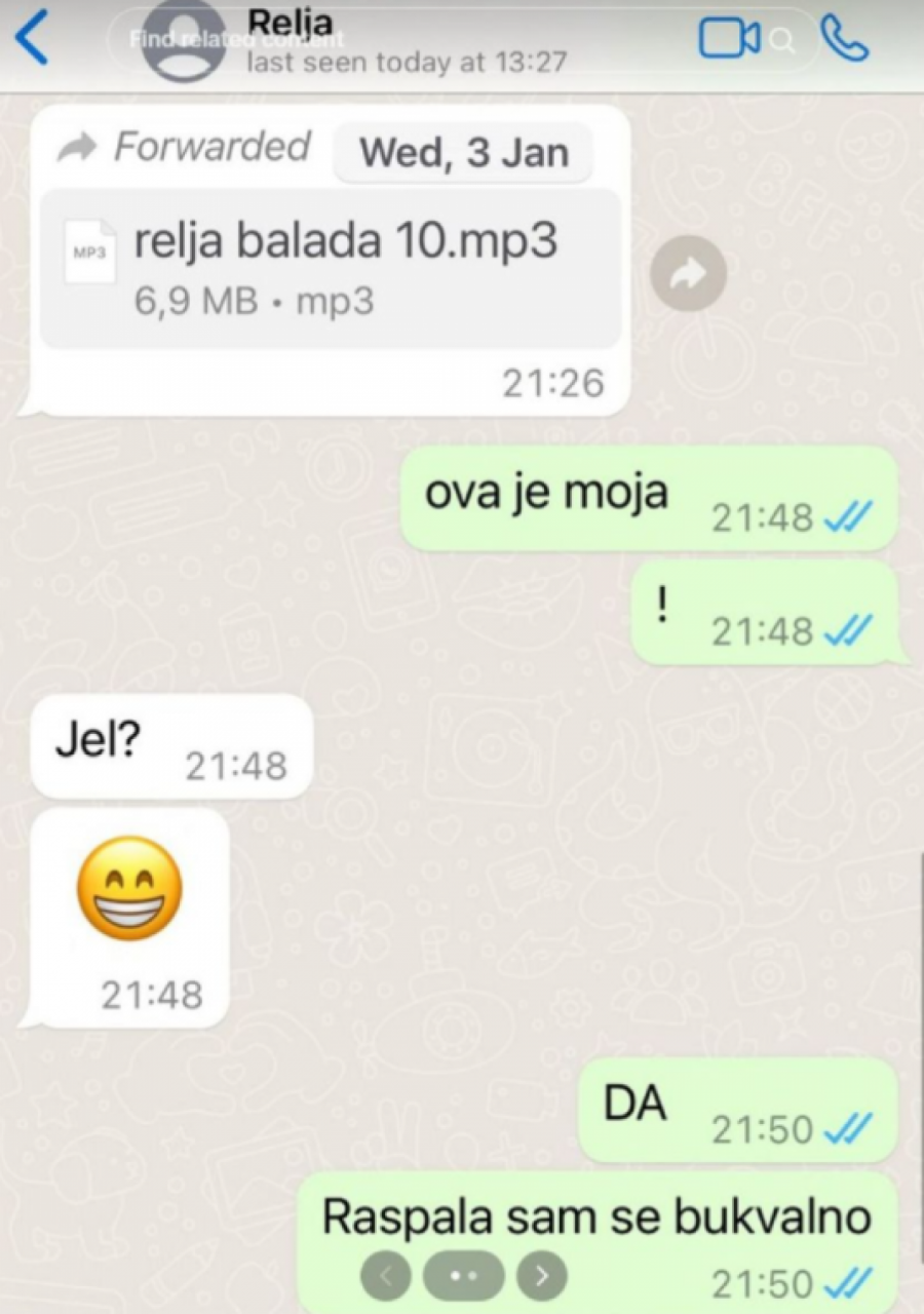 Relja joj je poslao svoju novu baladu, a ona mu je odgovorila: