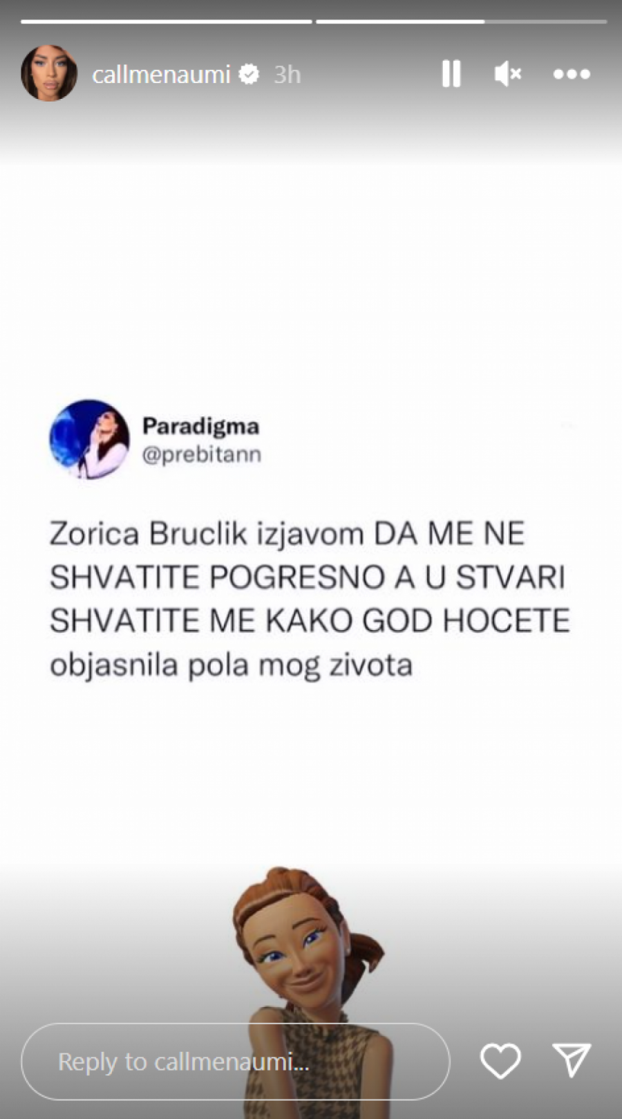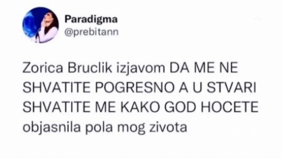 - Zorica Brunclik izjavom "da me ne shvatite pogrešno, a u stvari shvatite me kako god hoćete" objasnila pola mog života - objavila je Mina i jasno svima stavila do znanja da je ne dotiču ni hejteri ni kritike.