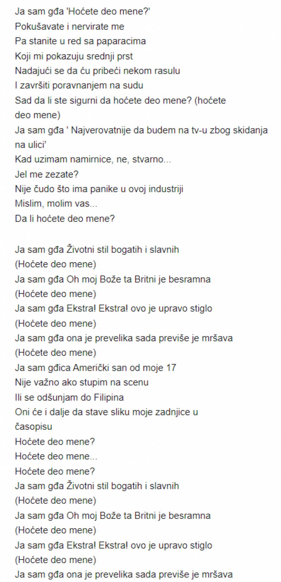 Naime, ona je sada objavila pesmu od strane pevačice Britni Spirs "Deo mene", a u nastavku u glaeriji možete pročitati tekst pesme kojim se Selma oglasila.