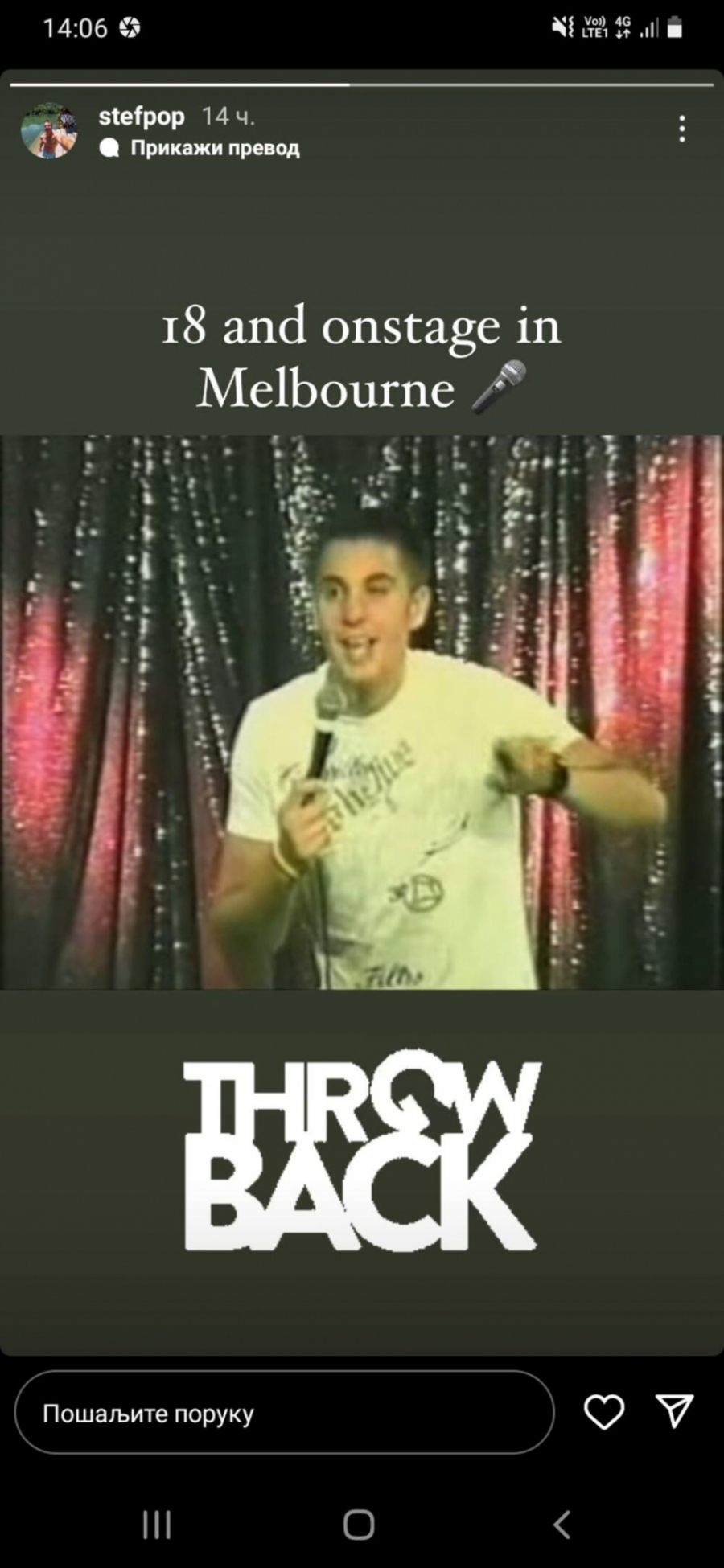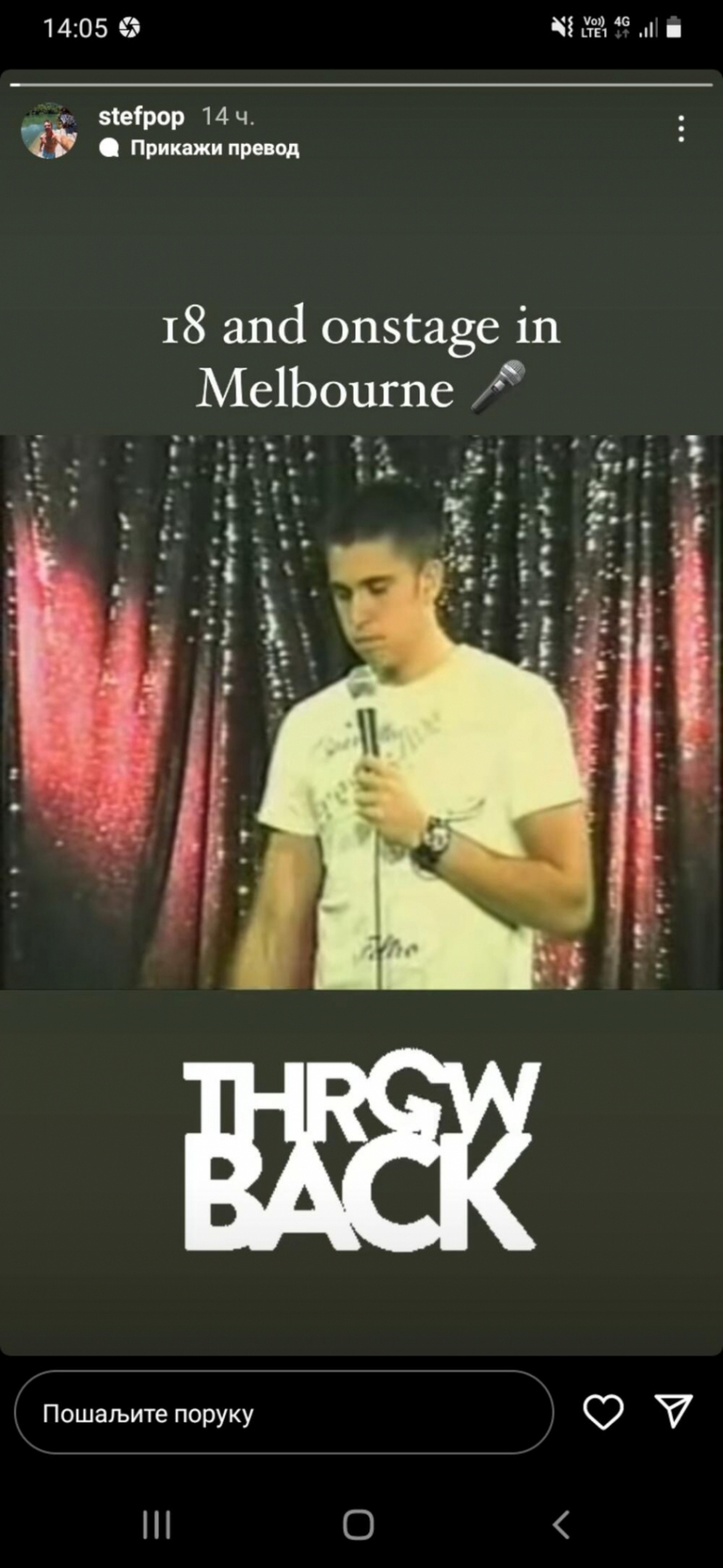 Naime, on je, dok je boravio u Australiji, nastupao kao "stand-up" komičar. Tada je imao samo 18 godina, a svojim pratiocima na "Instagramu" je pokazao kako je tada izgledao.