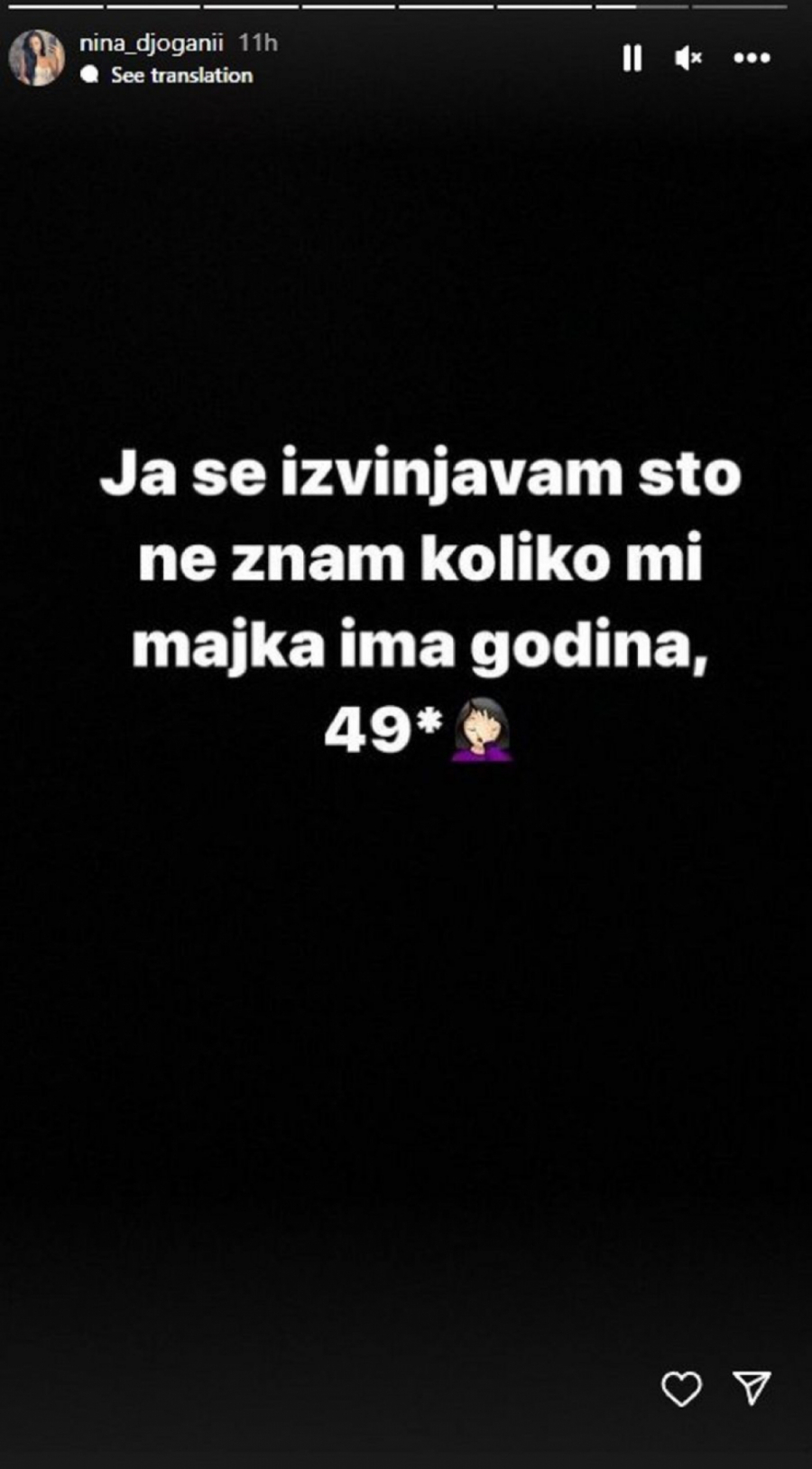 - Ja se izvinjavam što ne znam koliko mi majka ima godina - napisala je ona.