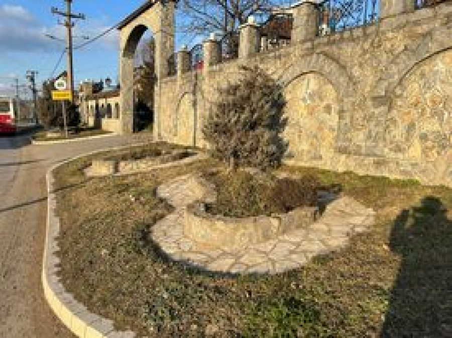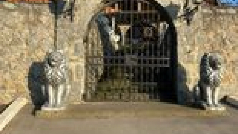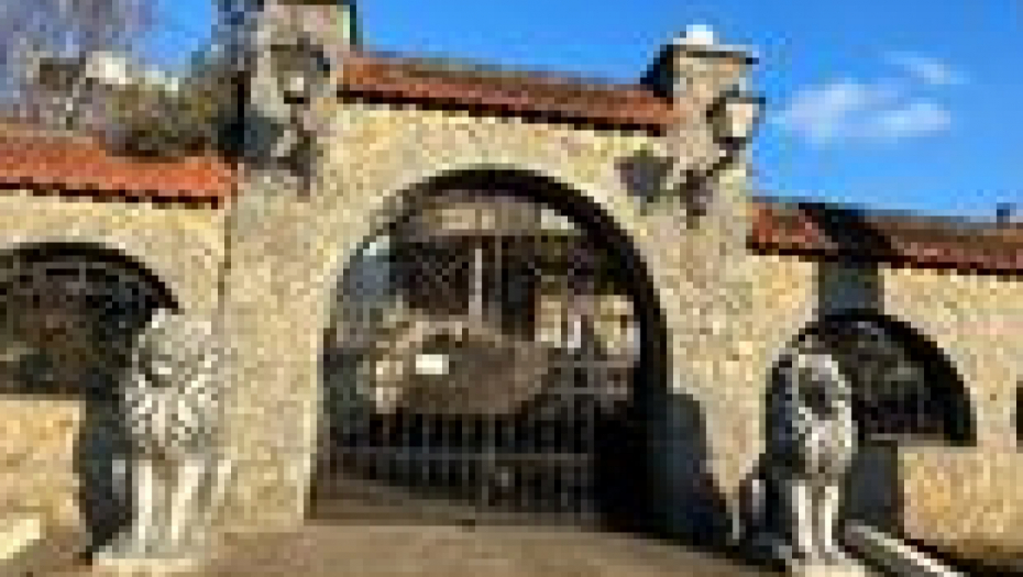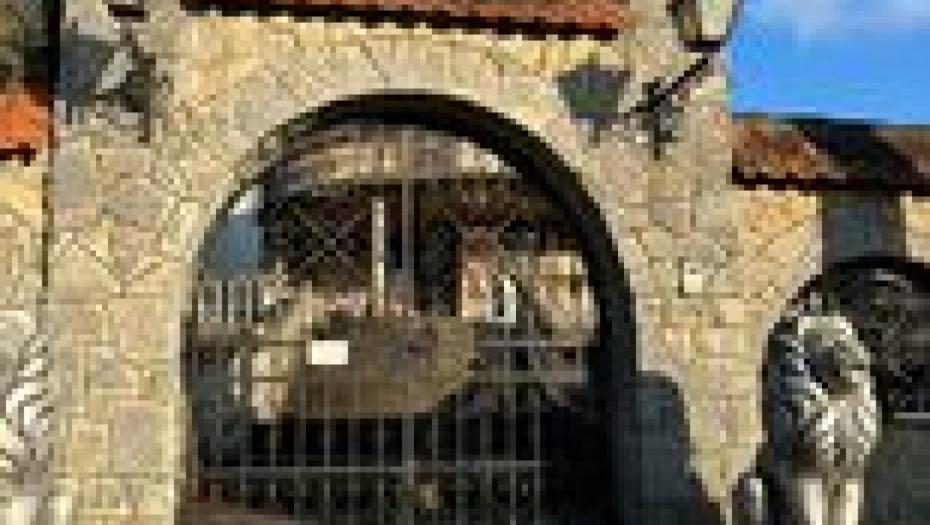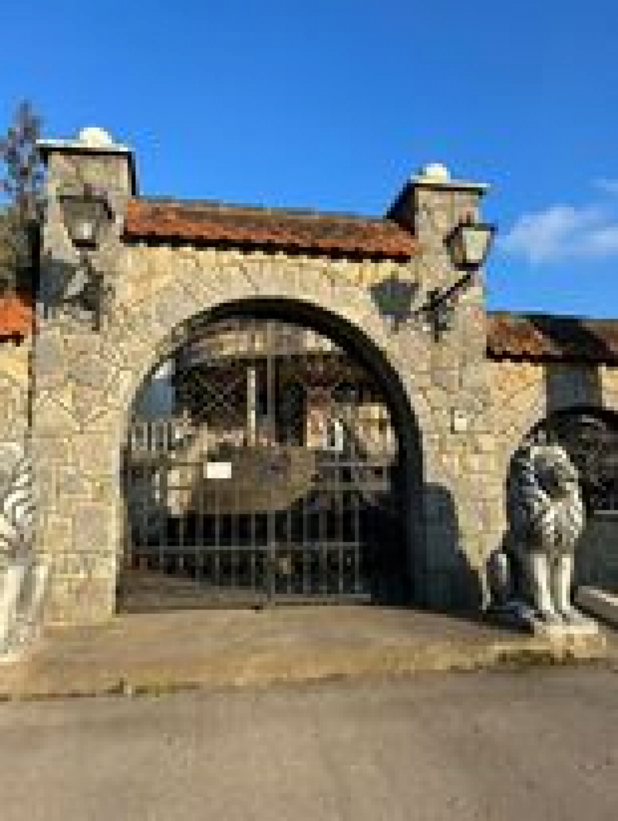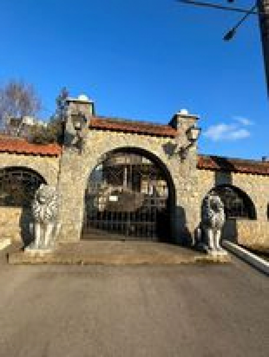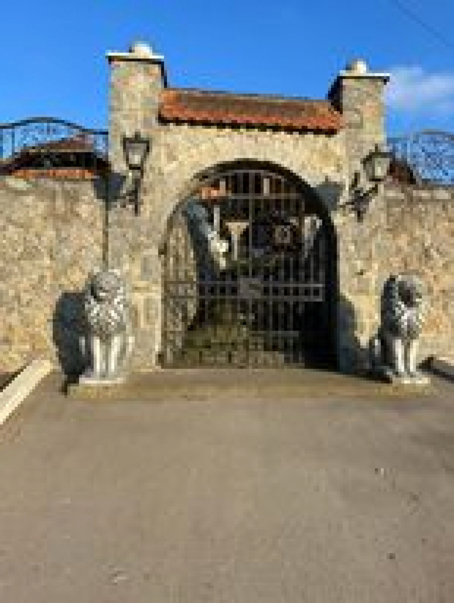 Na samom ulazu na prostrano imanje nalaze se velike kapije sa lavovima sa strane.