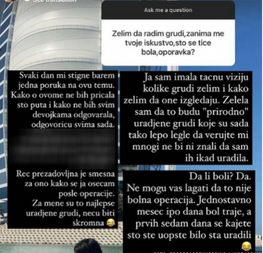 - Želim da radim grudi, zanima me tvoje iskustvo, što se tiče bola, oporavka? - glasila je poruka.