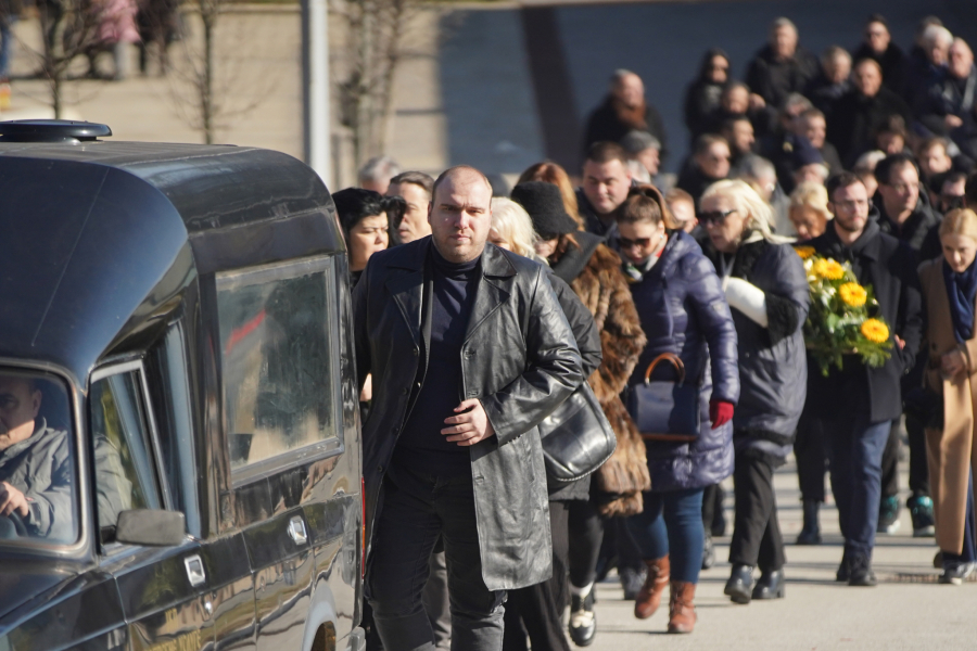 Folkera je na sahranu stigla među prvima, vidno utučena i slomljena od bola, u crnini.