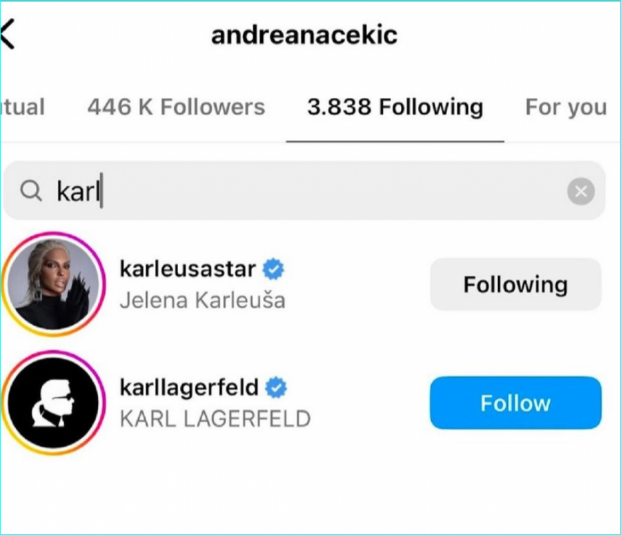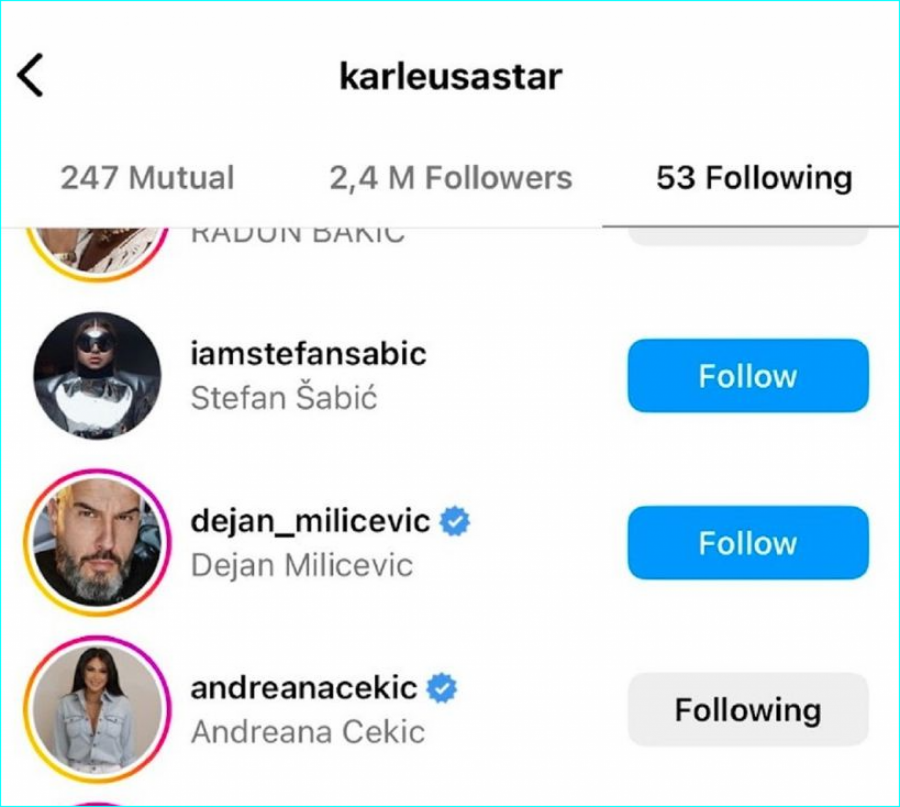 Interesantno je da Karleuša prati svega 50-ak ljudi, a između ostalih i Čekićevu.