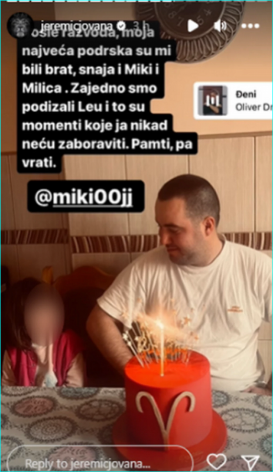 - Posle razvoda, moja najveća podrška su mi bili brat, snaja i Miki, i Milica. Zajedno smo podizali Leu i to su momenti koje ja nikad neću zaboraviti. Pamti, pa vrati - napisala je Jovana tada na Instagram storiju.