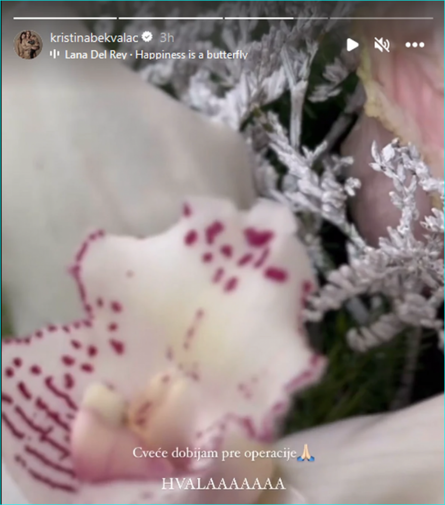 - Cveće dobijam pre operacije. Hvala - napisala je Kristina.Budući da je ovim video-snimkom zabrinula svoje mnogobrojne pratioce.