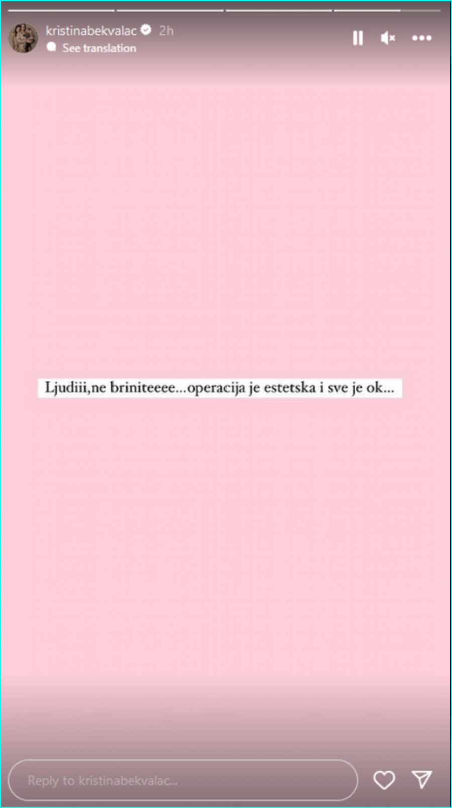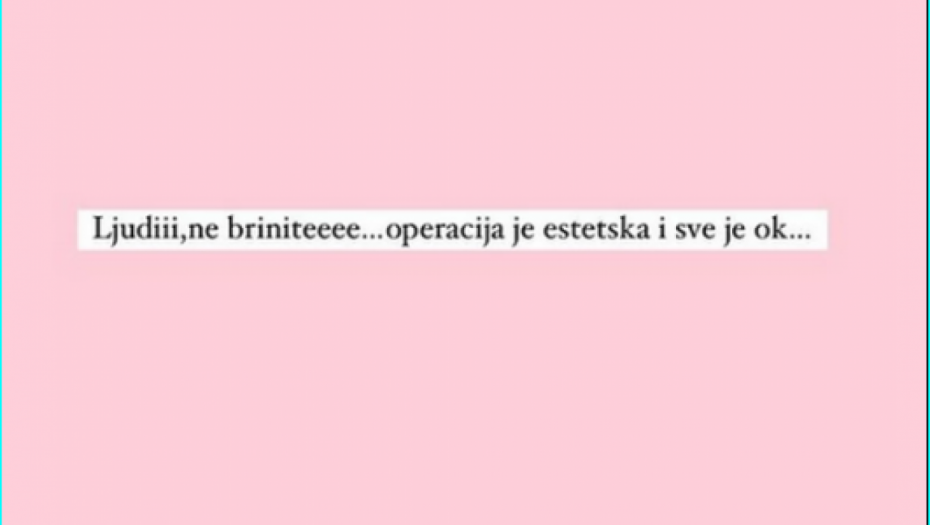 - Ljudi, ne brinite. Operacija je estetska i sve je okej - napisala je ona.