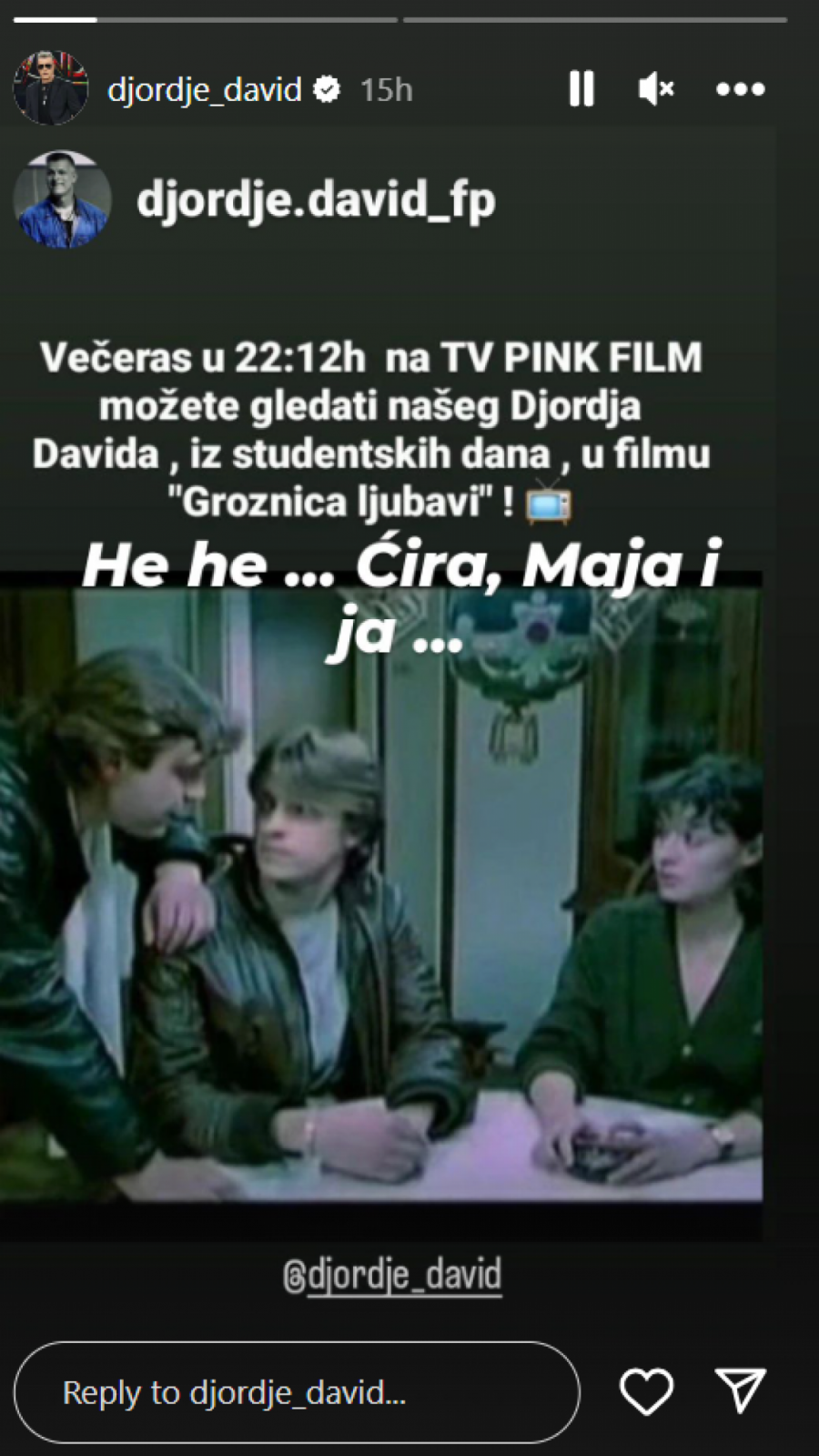 S tim u vezi Đorđe je danas objavio fotografiju iz filma "Groznica ljubavi" na kojoj je sa kolegama glumcima.