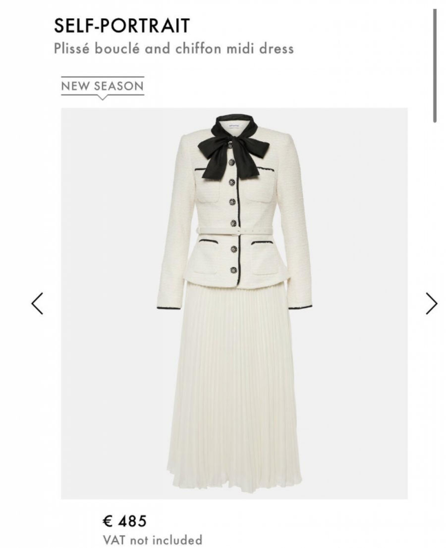 Tom prilikom Severina je ponela belu haljinu “self portrait” brenda, koja košta čak 485 evra, a čiji donji deo čini plisirana suknja mini, dok gornji izgleda poput sakoa s crnim detaljima.