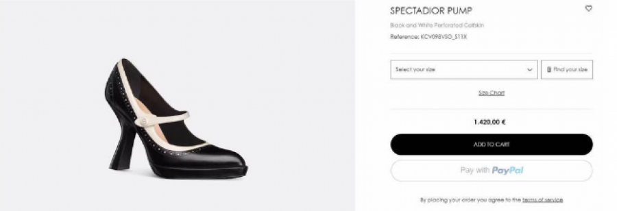 Cipele su napravljene od teleće kože u dve boje - crnoj s belim detaljima, a cena cipela je 1420 evra.