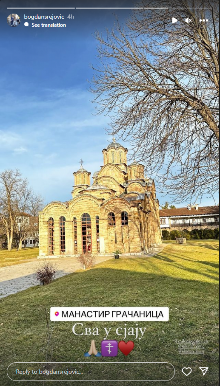 - Parče neba na zemlji. Slava Bogu - napisao je Bogdan uz sliku manastira Gračanica, a potom je fotografisao pod sjajem sunca.