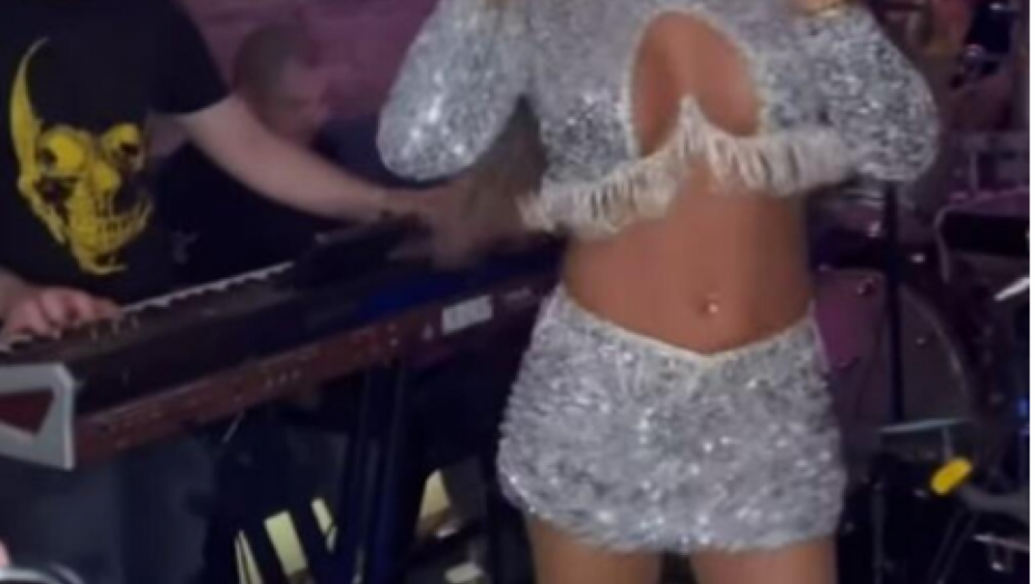 Na jednom nastupu se pojavila u šljokičavom kompletu koji je upravo grudi izbacio u prvi plan.