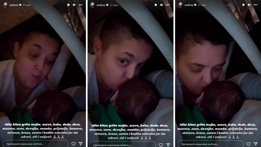 Marija se oglasila na društvenoj mreži Instagram pokazavši emotivne prizore iz doma, a u prvom planu su bile nogice njenog naslednika, dok je ona uživala na krevetu, a on bio na njenim grudima.