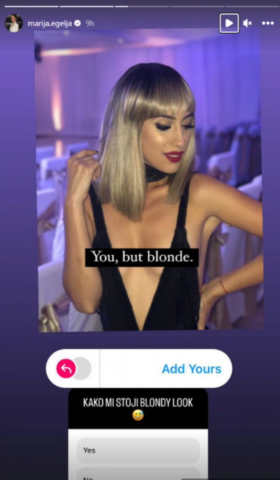 Naime, ona se uslikala sa perikom i pokazala kako bi izgleda kao plavuša i to sa kosom do ramena i šiškama, pa postavila pitanje da li i da pređe u plavuše, a komentari su odmah počeli da se nižu.