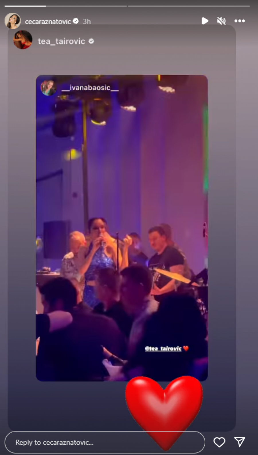 Pevačica Tea Tairović sinoć je nastupila u jednom klubu pred brojnom publikom, a posebnu pažnju privuklo je njeno izvođenje pesme Za kraj koju je Ceca otpevala za potrebe filma Nedelja.