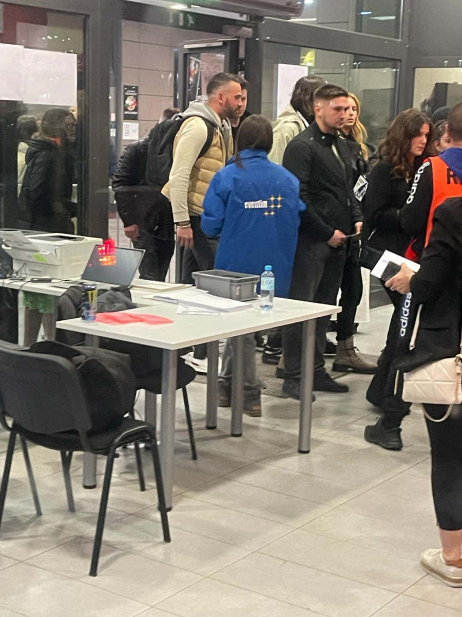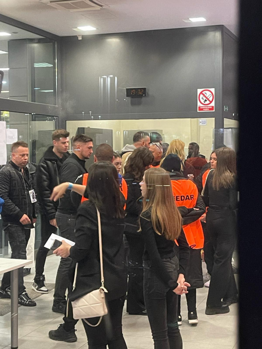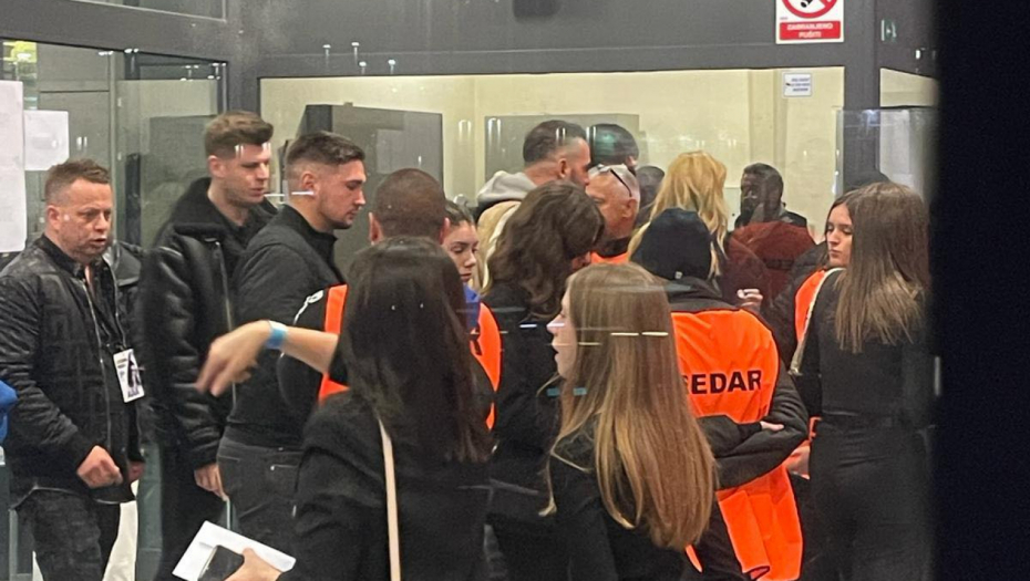 Fanovi su već krenuli da pristižu i zauzimaju svoja mesta, a zajedno sa njima, ušao je i njen suprug, Filip Živojinović, koji je pokušao da neprimetno prođe kroz masu.