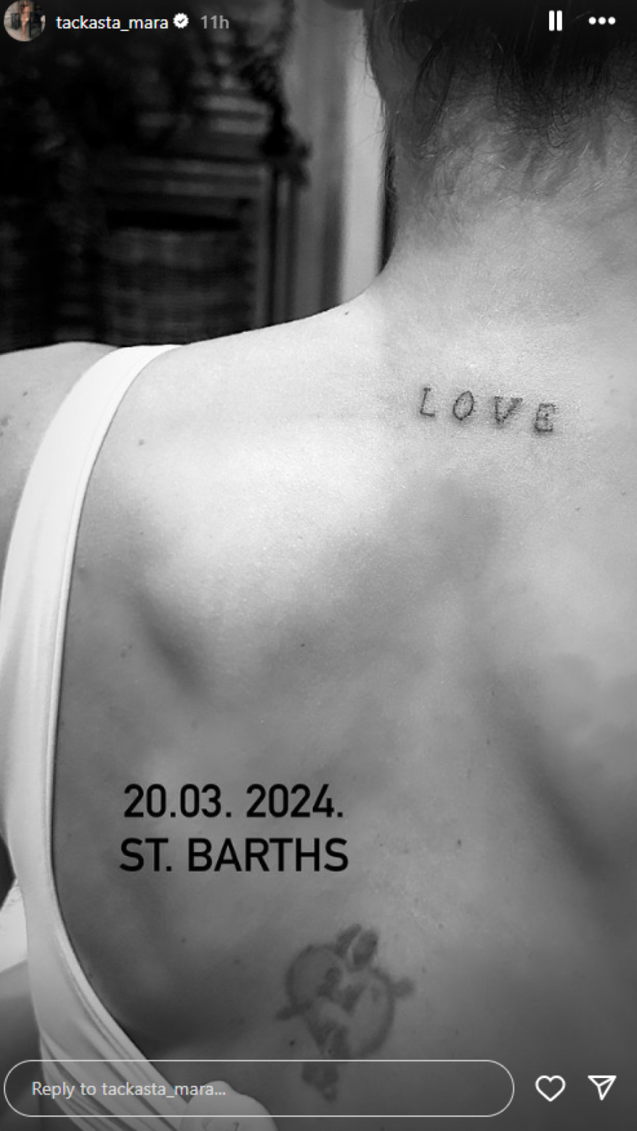 Naime, njih dvoje uživaju na Sent Bartu, odakle su podelili snimke na kojima se vidi kako je Branko tetovira.